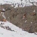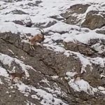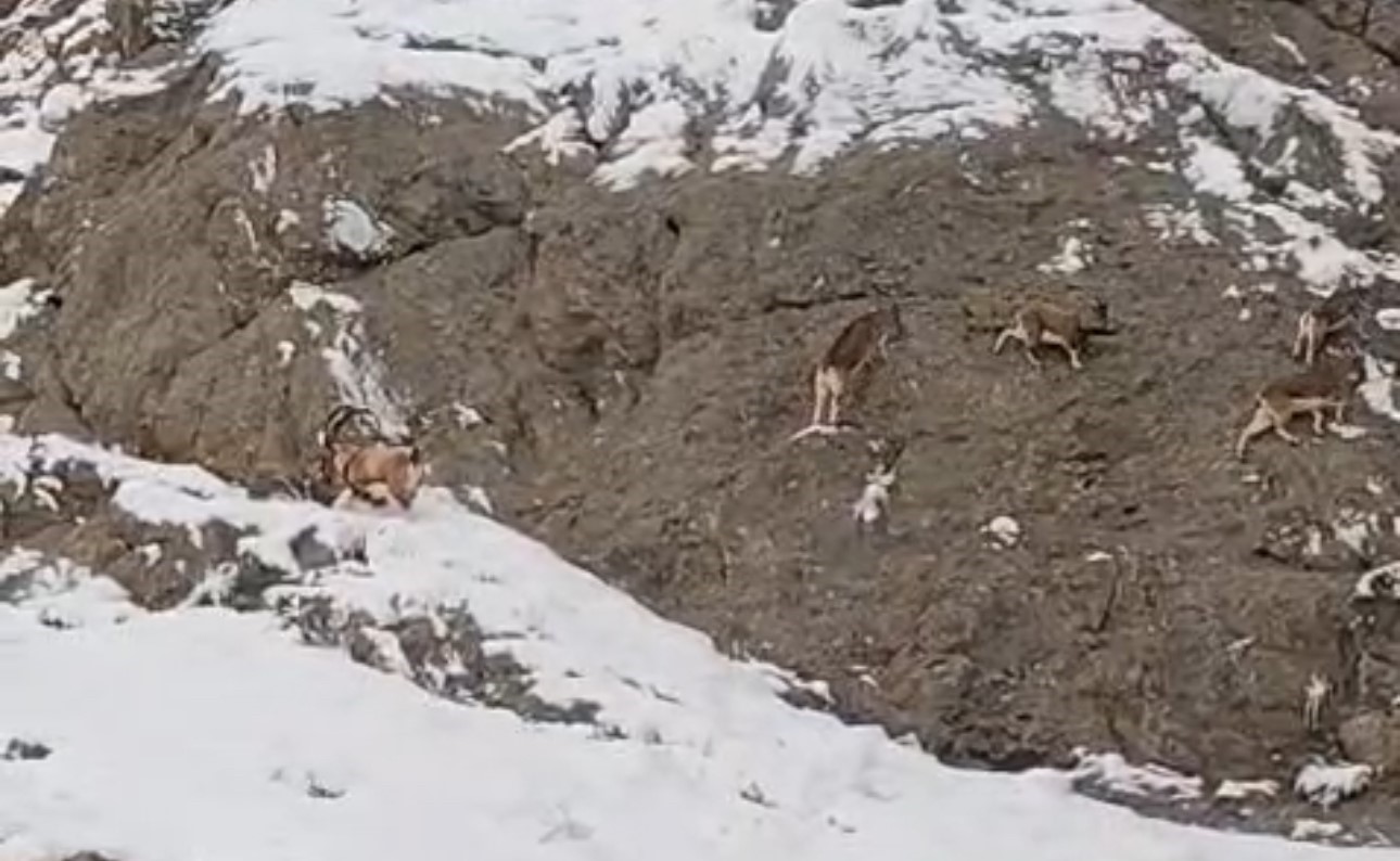 Güzeldere’nin karla kaplı yamaçlarda dağ keçileri görüntülendi