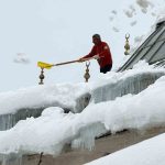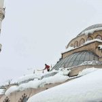 Hakkari’de kar yağışı sonrası Ulu Cami çatısında biriken karlar, vatandaşlar ve yetkililer tarafından güvenli şekilde temizlendi.