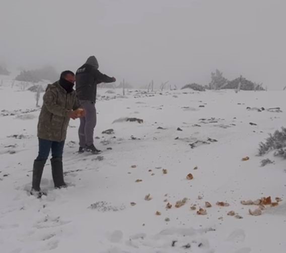 Öte yandan, doğaseverler de soğuk hava ve yoğun kar nedeniyle yiyecek bulmakta zorlanan yaban hayvanları için araziye yiyecek bıraktı.