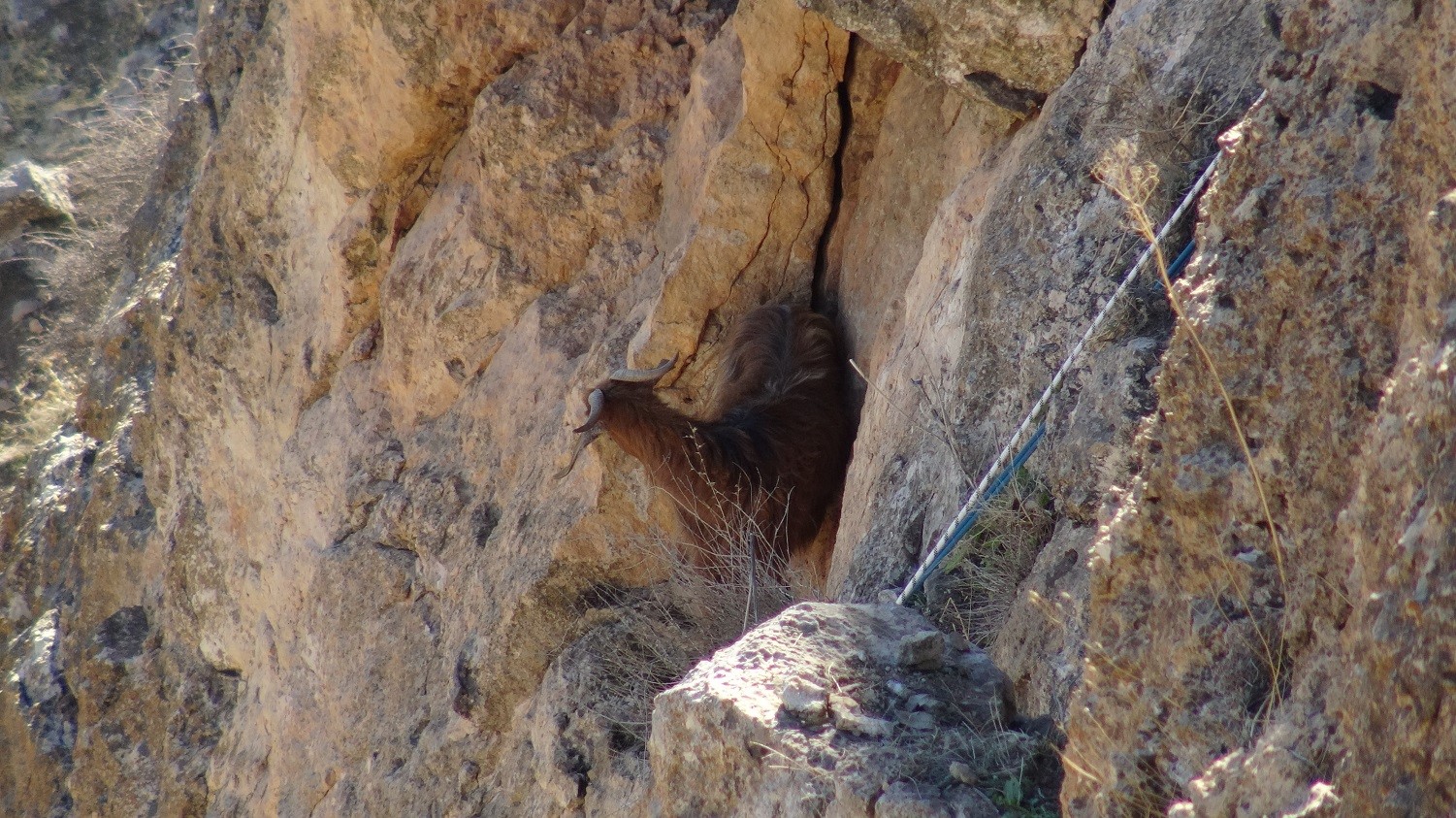 Batman’ın Hasankeyf ilçesine bağlı Yaka Köyü kırsalında sarp kayalıklarda 5 gündür mahsur kalan keçi, AFAD ekiplerinin titiz çalışmasıyla kurtarıldı.