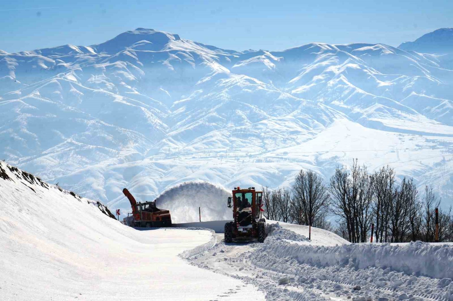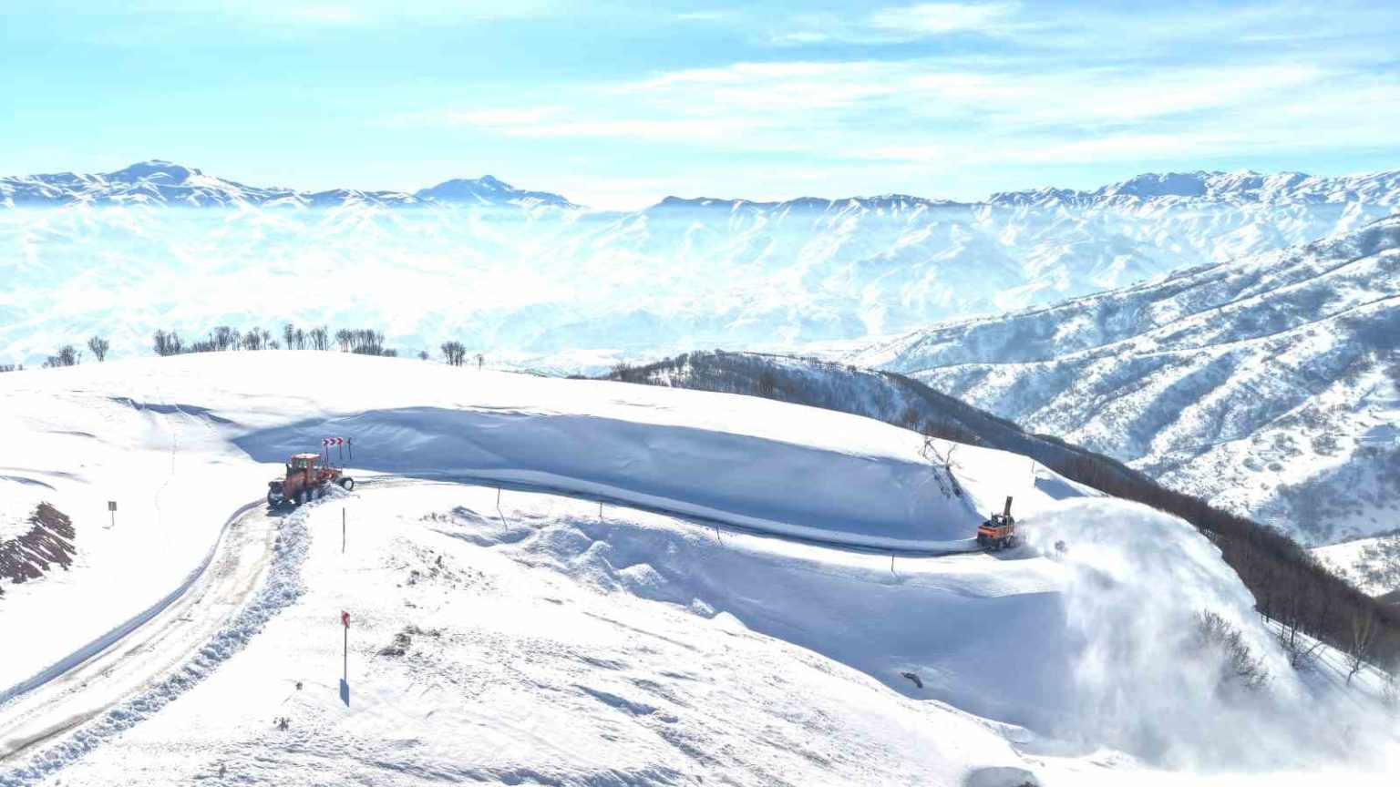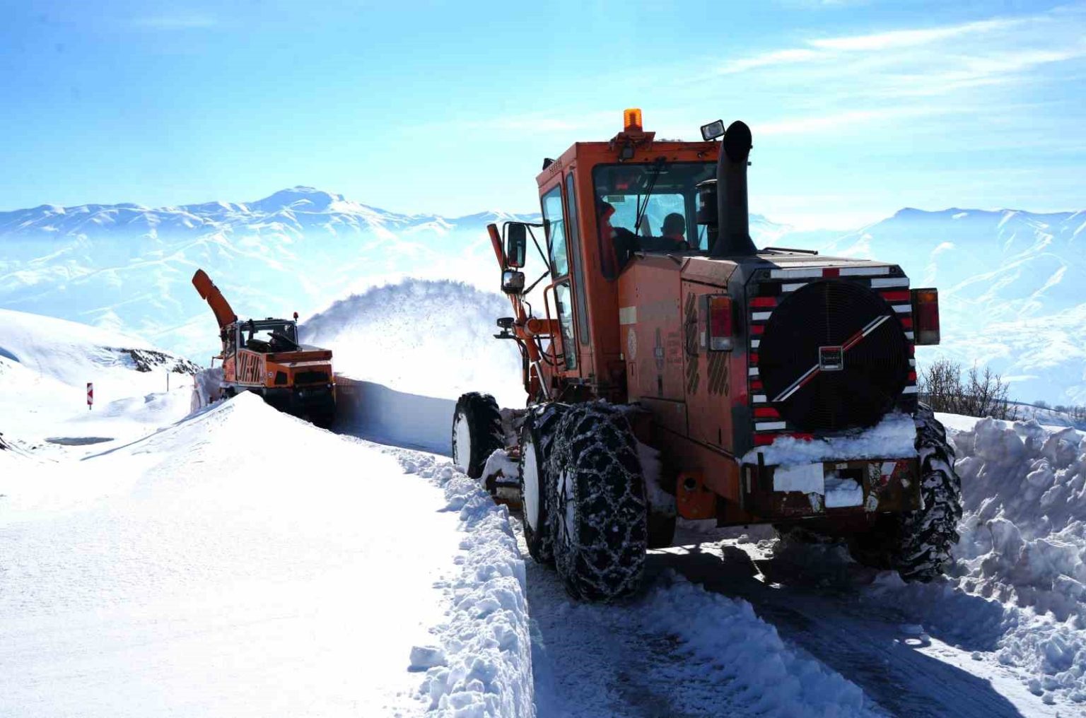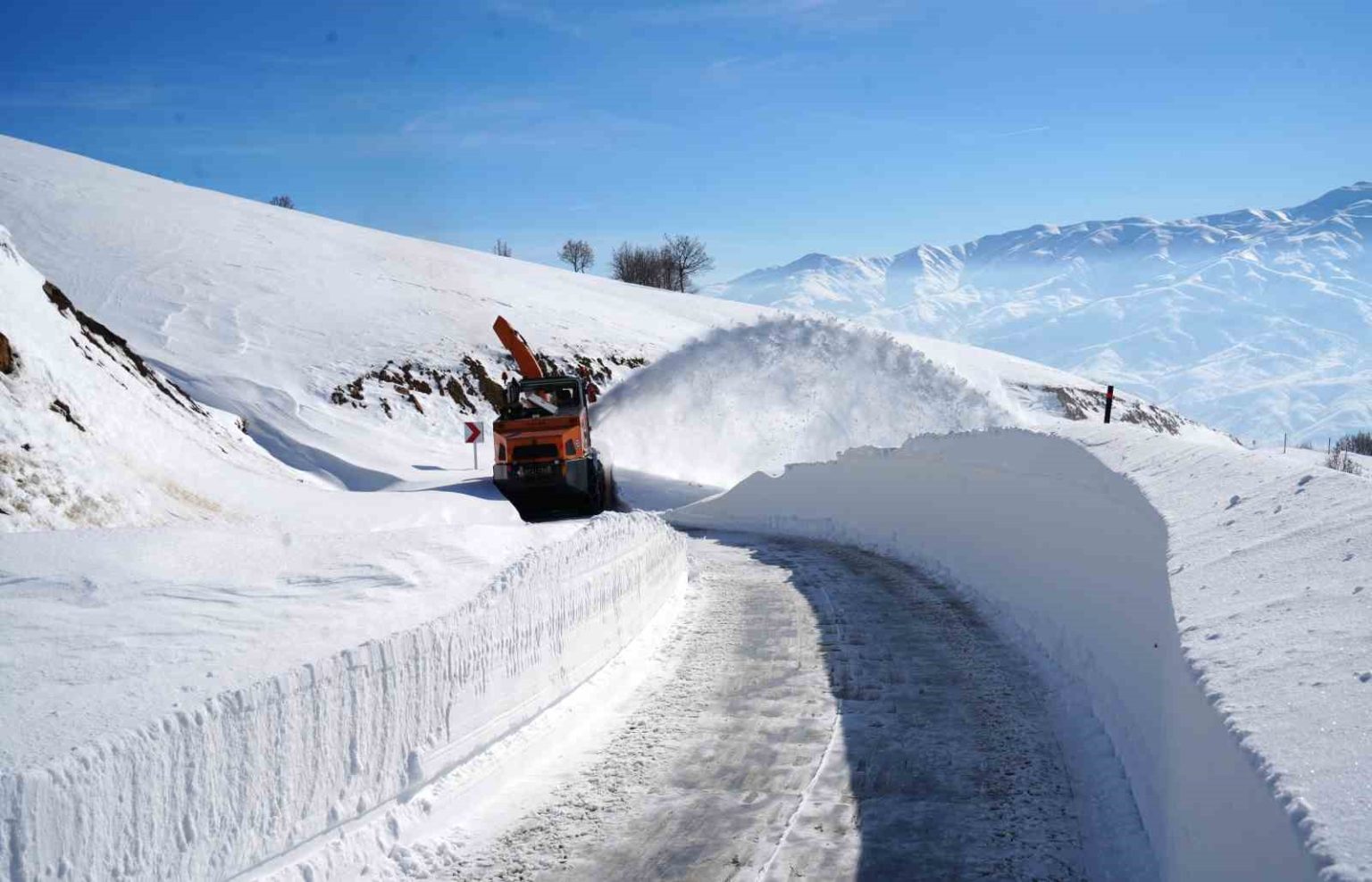 Muş’un Hasköy ilçesi ile Bitlis’in Mutki ilçesini birbirine bağlayan güvenlik yolunda, kar kalınlığının yer yer 2 metreyi bulduğu bölgede ekipler çığ ve fırtına riskine rağmen çalışmalarını aralıksız sürdürüyor.