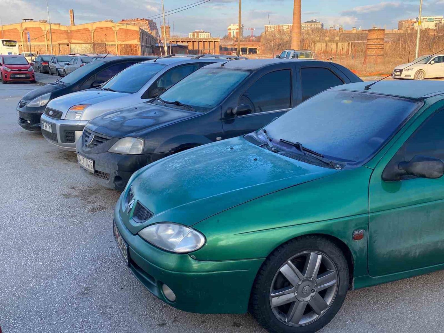 Eskişehir’de hava sıcaklığının sıfır derecenin altına düşmesi sonucunda, park halindeki otomobil ve motosikletlerin üzerinde buz tabakaları oluştu.