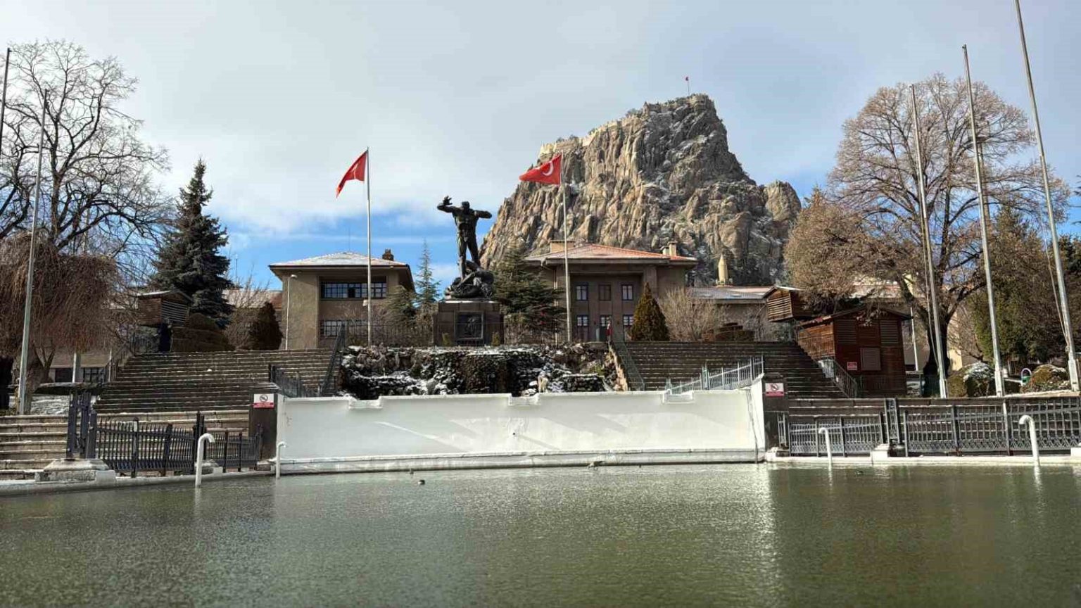 Kentte dün akşam saatlerinde etkili olan kar yağışı sonrası şehir adeta beyaza büründü. Kar yağışı ile birlikte hava sıcaklıkları da hissedilir derecelerde azalarak eksi 5 derecelere kadar düştü. Sıcaklıkların sıfırın altında seyrettiği kent merkezindeki süs havuzları dondu. Yağışla birlikte kent ulaşımında herhangi bir sorun yaşanmazken bazı cadde ve sokaklarda ise buzlanma olduğu gözlendi.