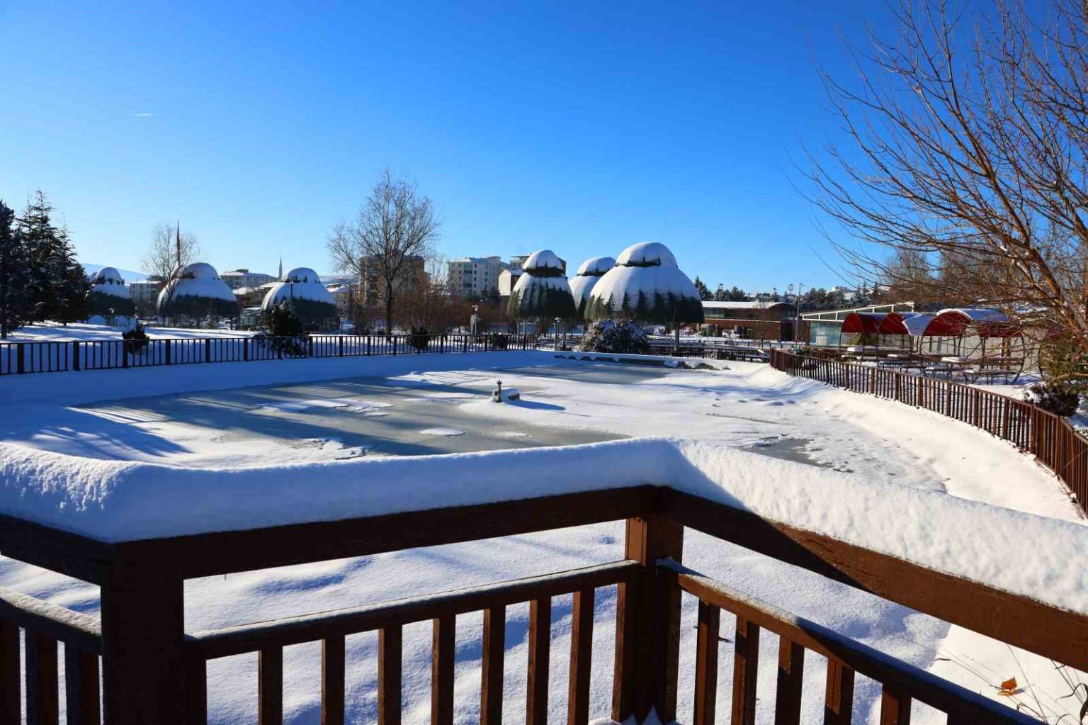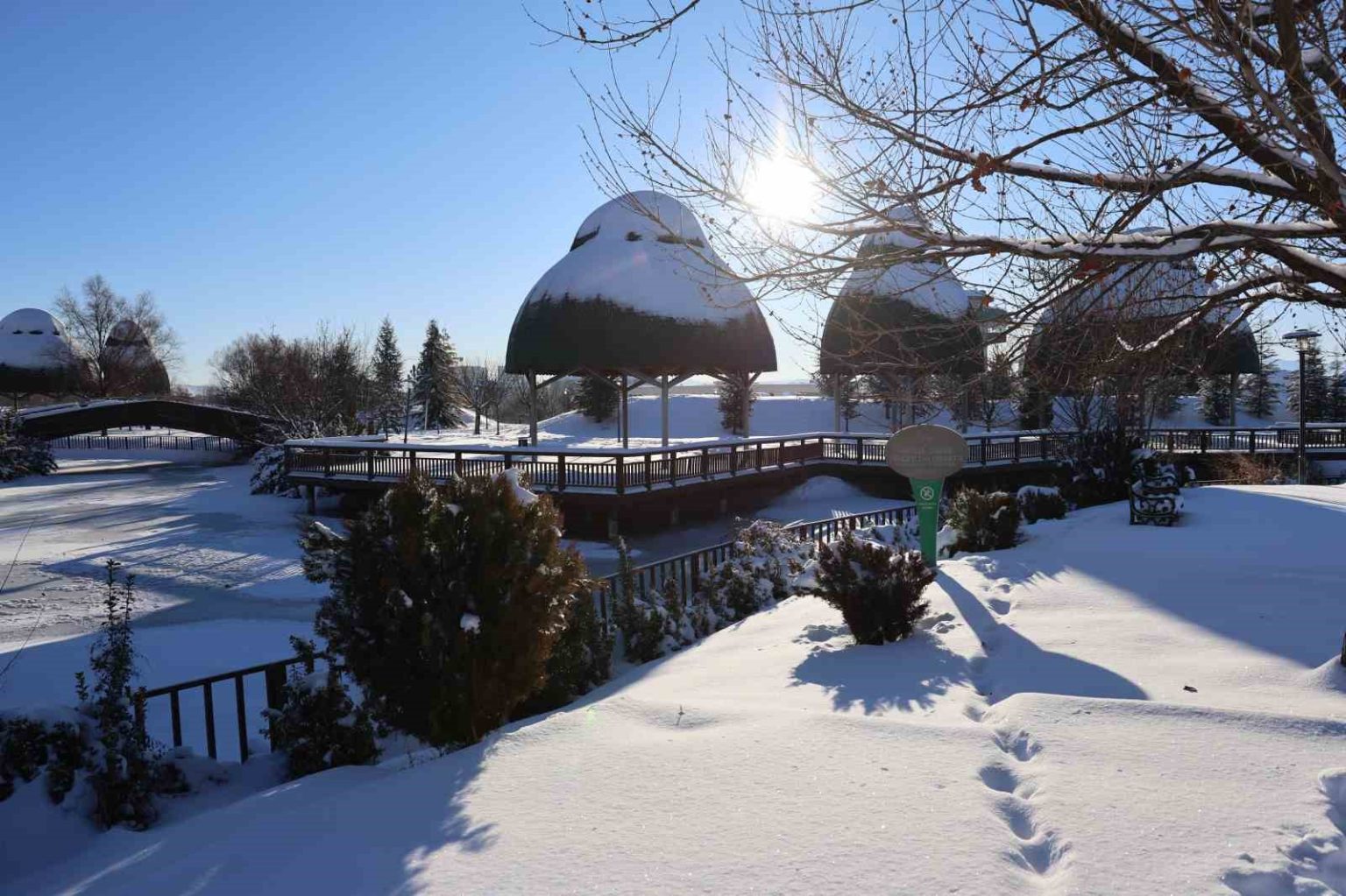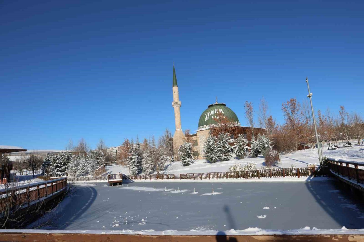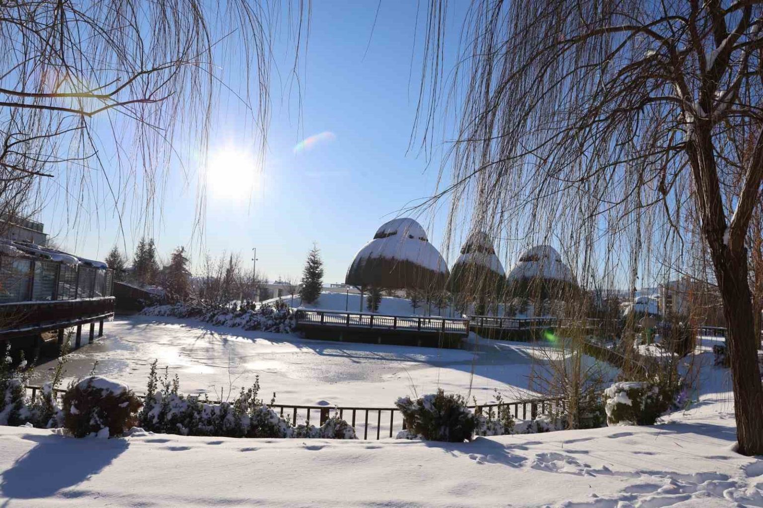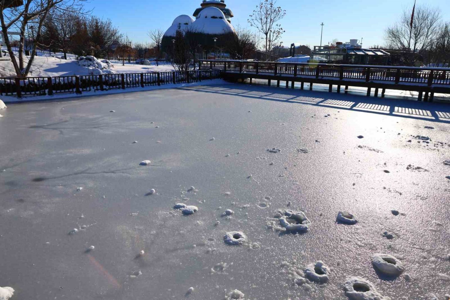 Hava sıcaklıklarının eksi 13’ü gördüğü kentte süs havuzları dondu