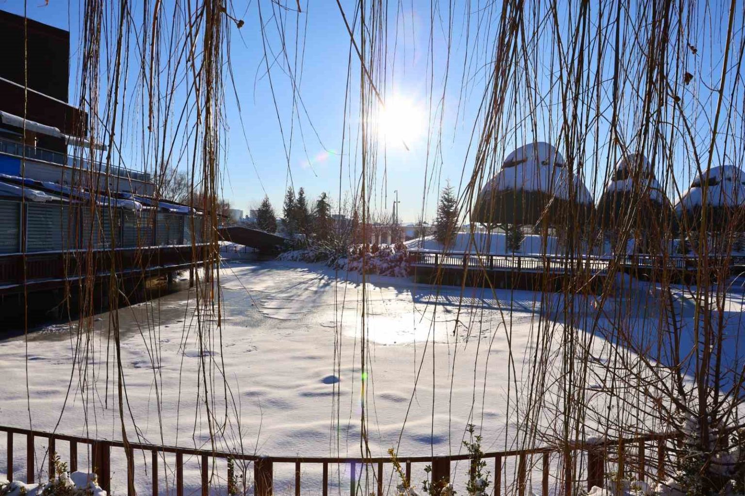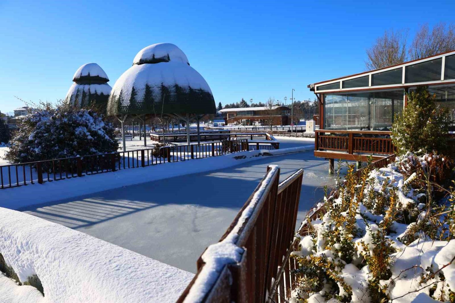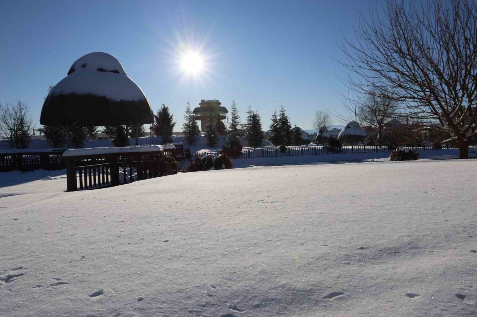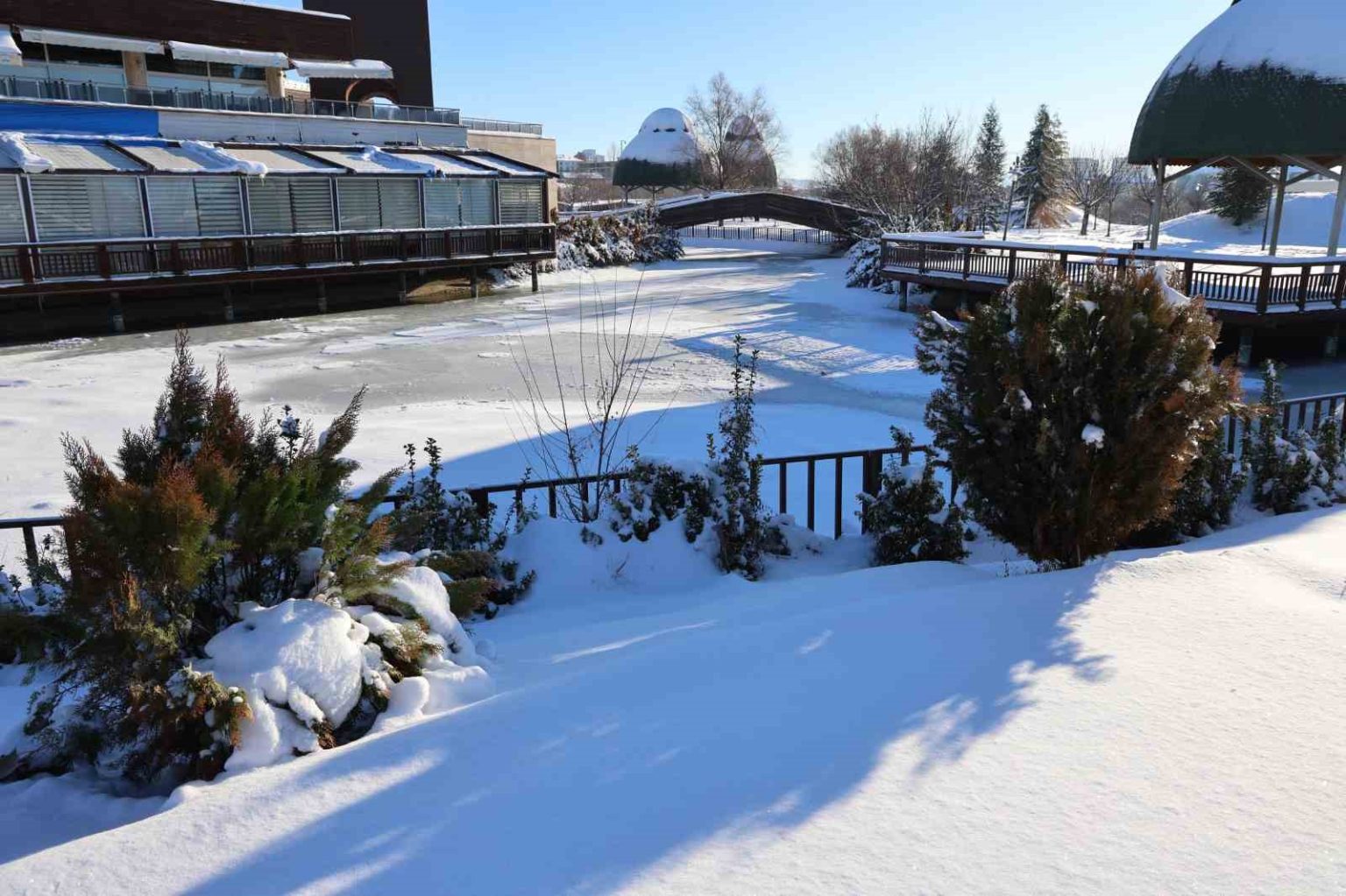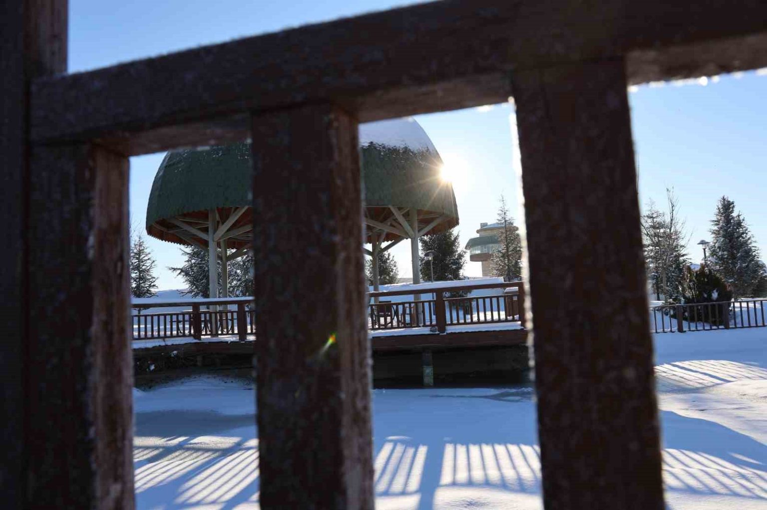 Hava sıcaklıklarının eksi 13’ü gördüğü kentte süs havuzları dondu