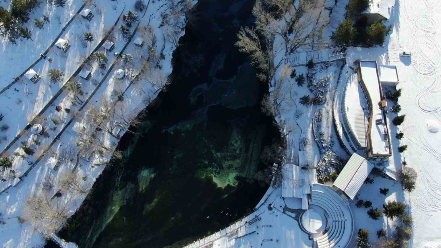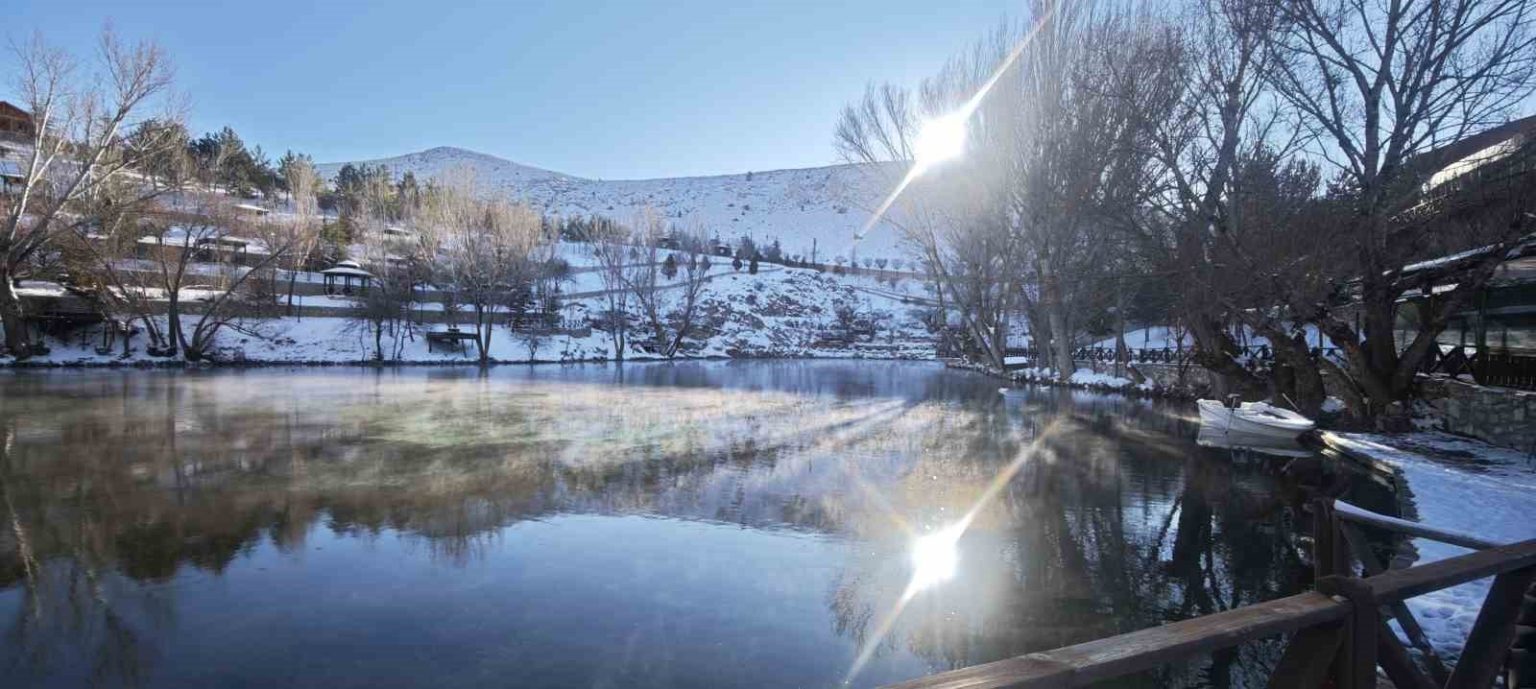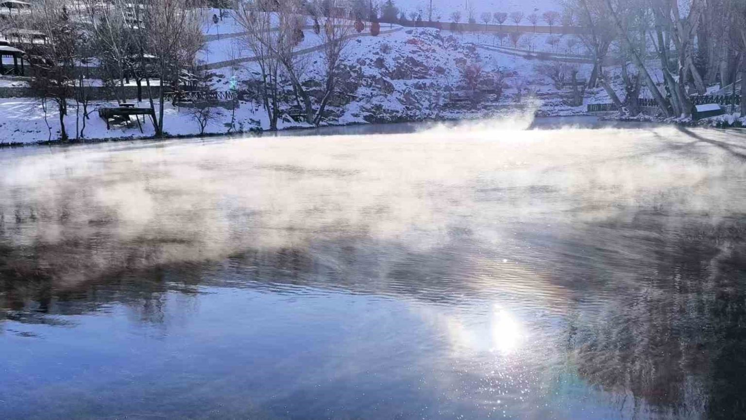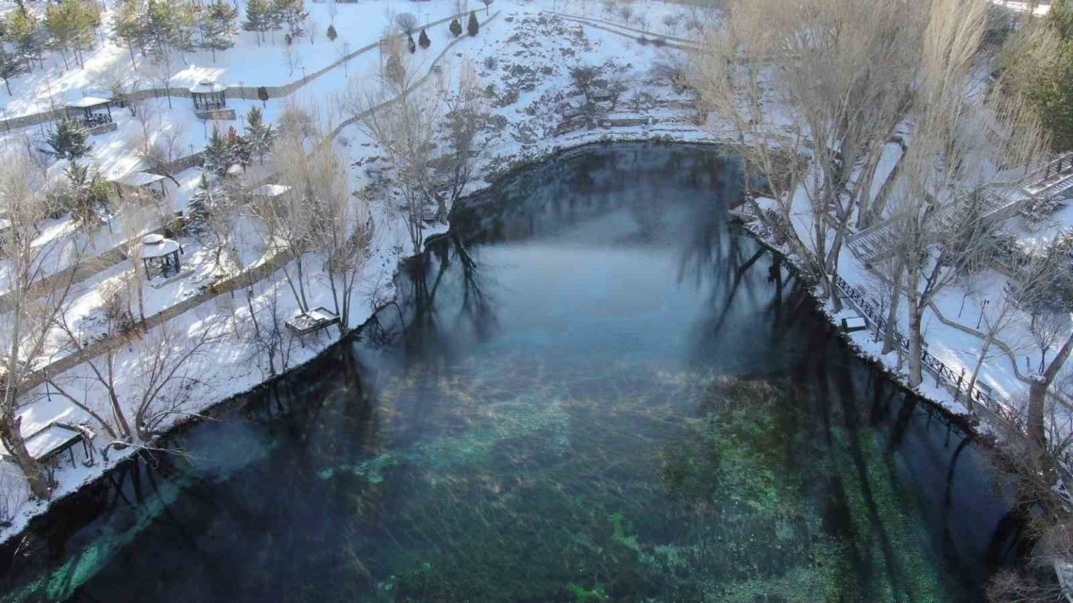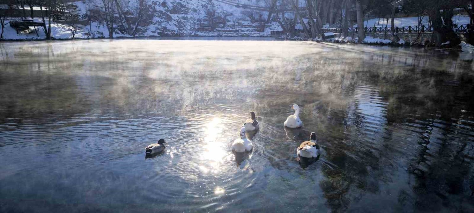 Sibirya soğuklarının yaşandığı Sivas’ta suya dair ne varsa dondu, donmayan tek göl, bozkırın nazar boncuğu Gökpınar gölü oldu.