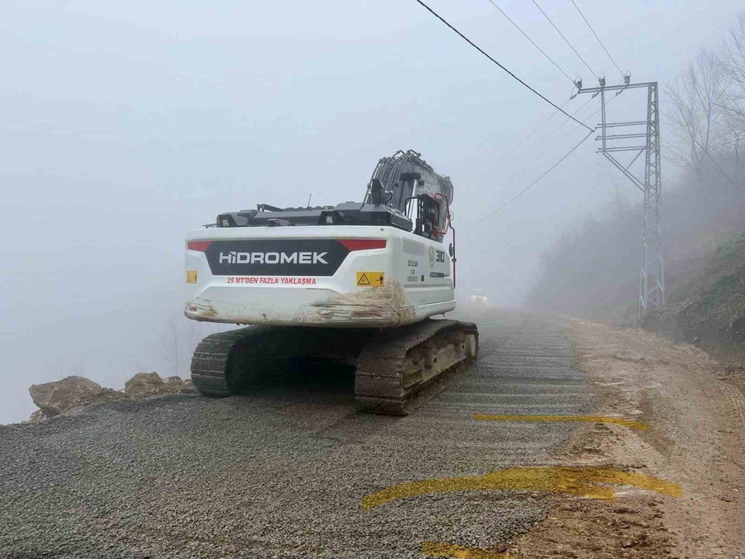 Özel İdaresi Yol ve Ulaşım Hizmetleri Müdürlüğü ile Kaynaşlı İlçe Özel İdare Müdürlüğü ekipleri tarafından yürütülen çalışmalar kapsamında, heyelan nedeniyle zarar gören yol güzergahında zemin güçlendirme, taş tahkimatı ve dolgu işlemleri titizlikle gerçekleştirildi. Yapılan uygulamalarla birlikte yol platformu yeniden güvenli hale getirilerek, ulaşımın aksamadan sürdürülmesi sağlandı.