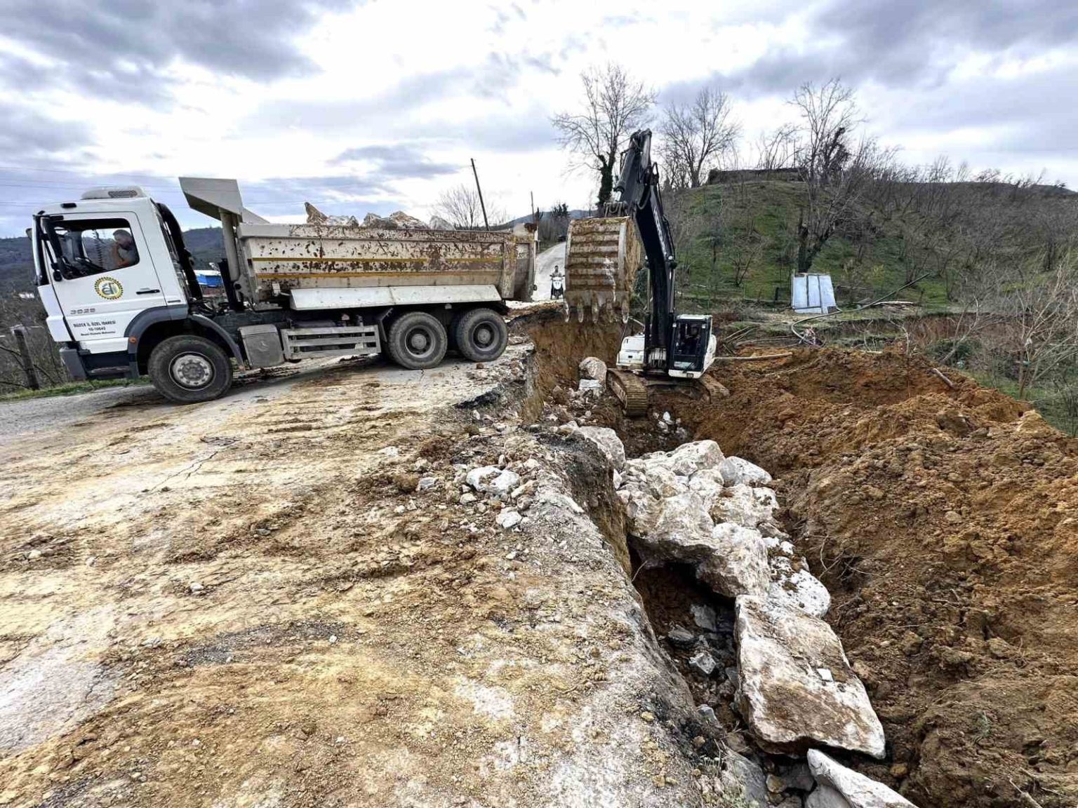 Düzce Yol ve Ulaşım Hizmetleri Müdürlüğü ile Akçakoca İlçe Özel İdare Müdürlüğü ekipleri, Akçakoca ilçesine bağlı Kirazlı Köyü’nde meydana gelen heyelan sonrası bölgede oluşan olumsuzlukların giderilmesi ve yol güvenliğinin sağlanması amacıyla çalışmalarını aralıksız sürdürüyor. Heyelan alanında zeminin yeniden stabil hale getirilmesi için taş tahkimatı ve dolgu çalışmaları titizlikle yürütülürken, yaşanabilecek risklerin önüne geçilmesi hedefleniyor. Gerçekleştirilen çalışmalarla birlikte hem can hem de mal güvenliğinin sağlanması, ulaşımda yaşanabilecek aksaklıkların önlenmesi amaçlanıyor. Yetkililer, bölgede yürütülen müdahale ve iyileştirme çalışmalarının planlanan program doğrultusunda devam edeceğini belirtirken, benzer durumlara karşı il genelinde gerekli tedbirlerin alınmaya devam edileceğini ifade etti.