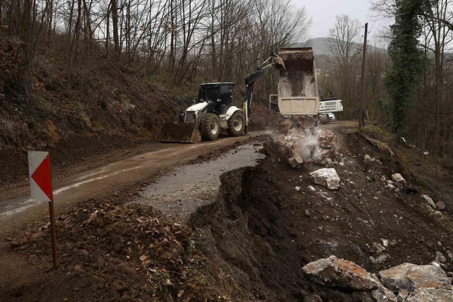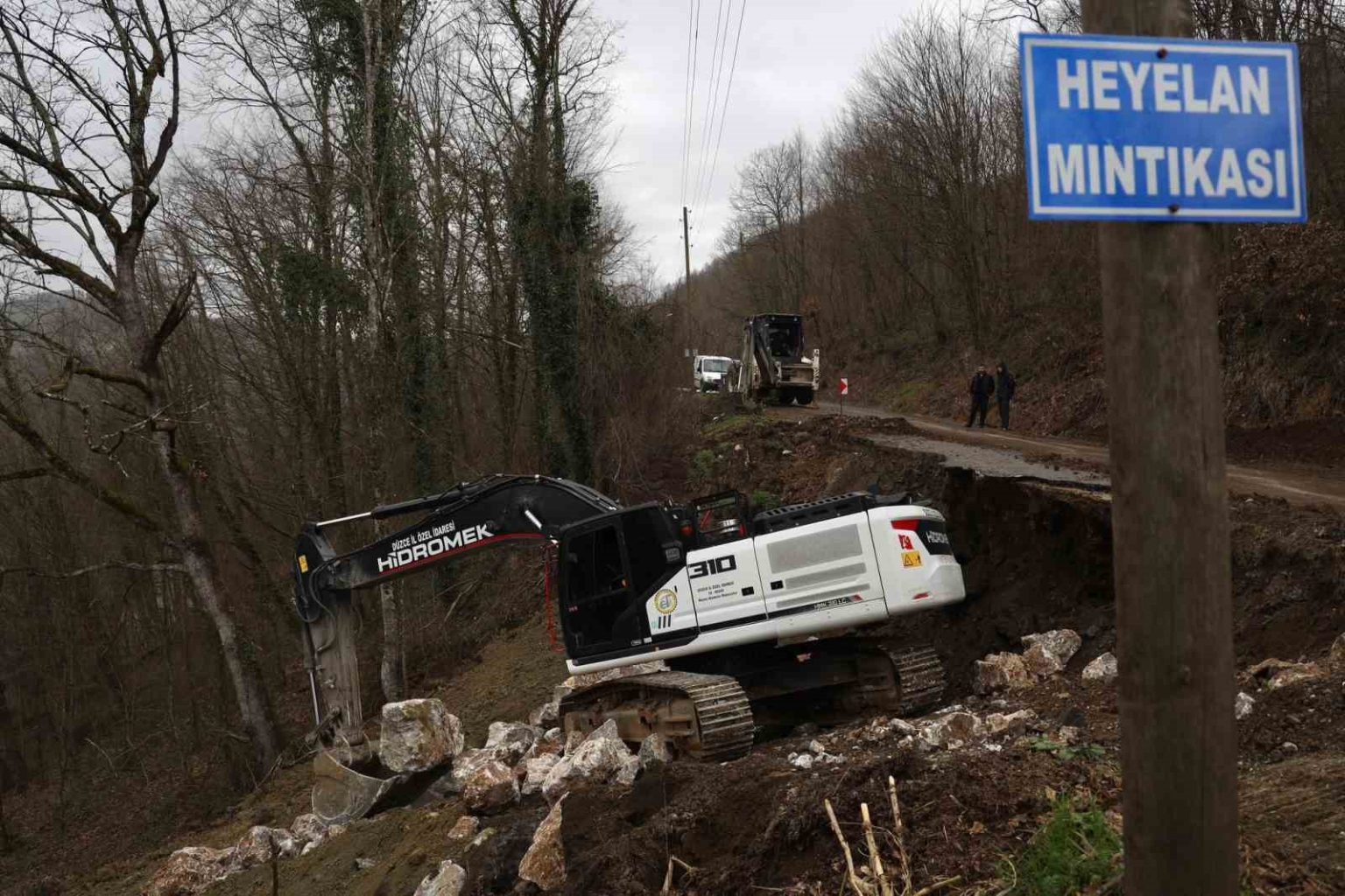 DÜZCE (İHA) – Düzce’de Yol ve Ulaşım Hizmetleri Müdürlüğü ekipleri tarafından, Cumayeri ilçesine bağlı Dokuzdeğirmen köyünde meydana gelen heyelan sonrası bölgede başlatılan taş tahkimat ve dolgu çalışmaları aralıksız devam ediyor.