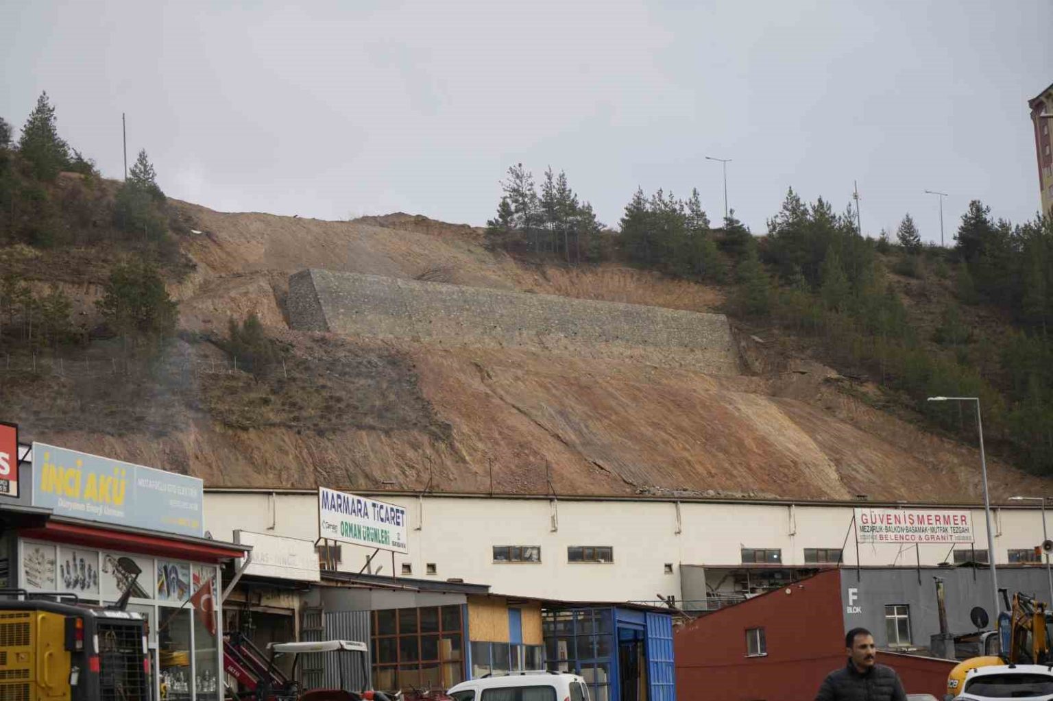 Sanayi sitesinde esnaflık yapan Okan Çakmak, “Yaklaşık 3 ay önce, işletmemizin önünde bulunan istinat duvarı dağdan gelen heyelan nedeniyle çöktü ve bu süreçte işletmemiz kapatıldı. Daha sonra heyelanlı alanın boşaltılması ve ön kısma istinat duvarı yapılmasının ardından işletmemizin yeniden faaliyete geçmesine izin verildi. Ancak buradaki çalışmalar tam anlamıyla tamamlanmış değil. Yol çalışmaları ve dağın içinden geçtiği söylenen suyun tahliyesi gibi işlemler henüz bitmedi. Bu nedenle yaşadığımız mağduriyet tam olarak giderilmiş değil. Ön tarafta işletmemizin önüne bir istinat duvarı yapıldı, dağın üst kısmına da yeniden bir duvar inşa edildi. Dağda şu an yeniden bir hareketlilik olup olmadığını teknik olarak bilemem; bunu yetkililer ve mühendisler daha iyi değerlendirecektir. Ancak gözle görülebilen bir çatlak var. Hareket olup olmadığını bilmiyorum ama bu çatlağı görmek insanı ister istemez tedirgin ediyor. Çatlak, işletmemizin tam karşı kısmında bulunuyor. Üst taraftaki istinat duvarı yapıldıktan sonra, dağın orta kısmında bir çatlak oluştu. Daha sonra bu durumu önlemek amacıyla ön tarafa da bir duvar yapıldı. Şu an bu çatlağın ilerleyip ilerlemediğini bilmiyoruz ancak gözle görülür şekilde mevcut. Bu durum ister istemez tedirginlik oluşturuyor. ‘Yeniden heyelan olur mu, işletmeler tekrar kapatılır mı?’ endişesi yaşıyoruz. Sonuçta biz buradan ekmek yiyoruz. Bu süreçte bazı esnaf arkadaşlarımız mağdur oldu; iş yerini kapatanlar, kirada olduğu için çıkanlar oldu ve bazı işletmeler boş kaldı. İnsanlar doğal olarak tedirgin. Çünkü biz burada, heyelan alanının hemen önünde çalışıyoruz” dedi.