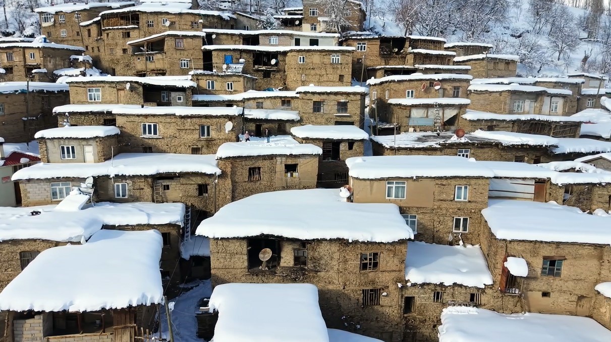 Bitlis’in Hizan ilçesindeki taş evlerden oluşan köyler, kar yağışıyla birlikte kartpostallık manzaralar oluşturuyor.