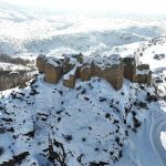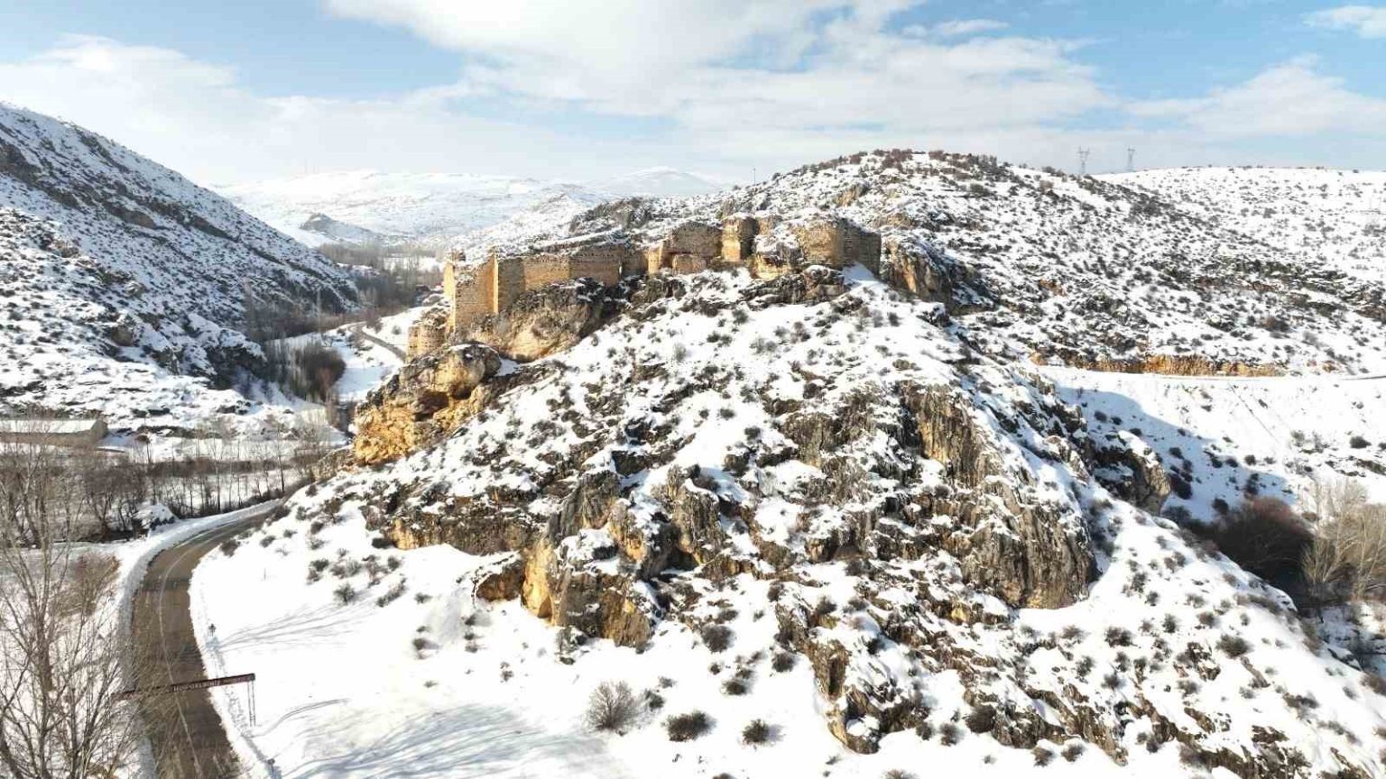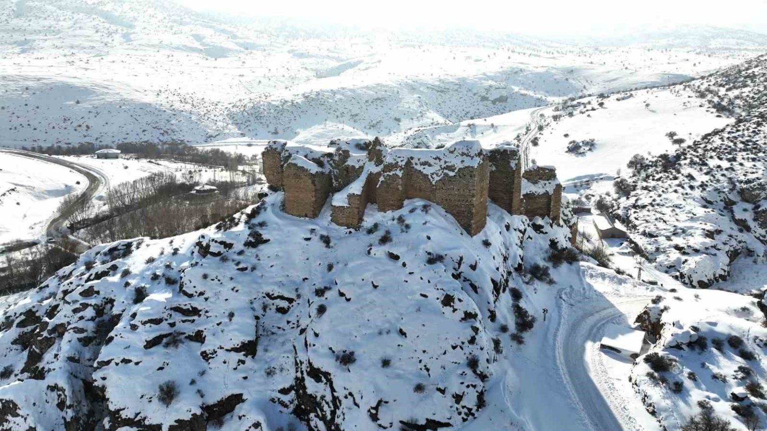 Afşin ilçesine bağlı Marabuz Dağlıca Mahallesi’nde sarp kayalar üzerinde bulunan ve Roma döneminden kalan Hurman Kalesi karın yağmasıyla birlikte görüntüsüyle mest etti.