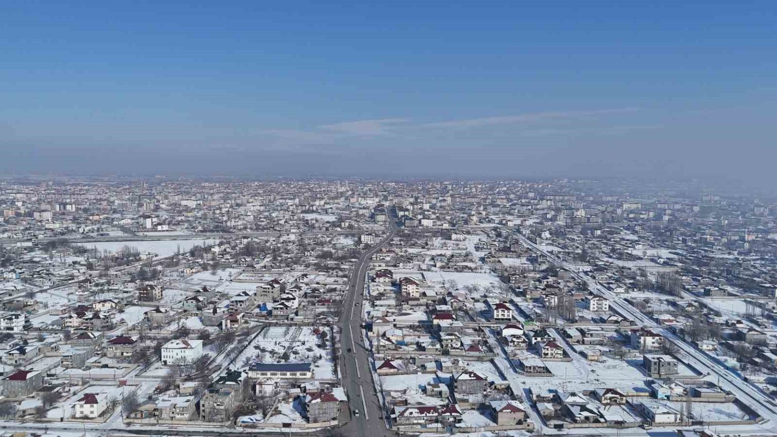Doğu Anadolu’nun ’Çukurovası’ olarak bilinen Iğdır son yılların en yoğun kar yağışını aldı. Günlerdir etkili olan yağışın ardından şehir merkezinde kartpostallık görüntüler oluştu. Beyaz örtünün hakim olduğu Iğdır, dron ile havadan görüntülendi. Kentin karla kaplı etkileyici manzaraları görsel şölen sundu.