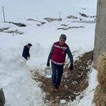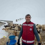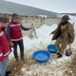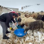 Van’ın Muradiye ilçesi Devetaş köyüne bağlı Sabunsata mezrasında ağır kış şartlarından dolayı susuz kalan koyun ve keçilerin imdadına Muradiye İlçe