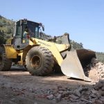 Aydın’ın İncirliova ilçesinde yağışlardan sonra çökme yaşanan Arzular Eğrek yolunda ekiplerin çalışması devam ediyor.