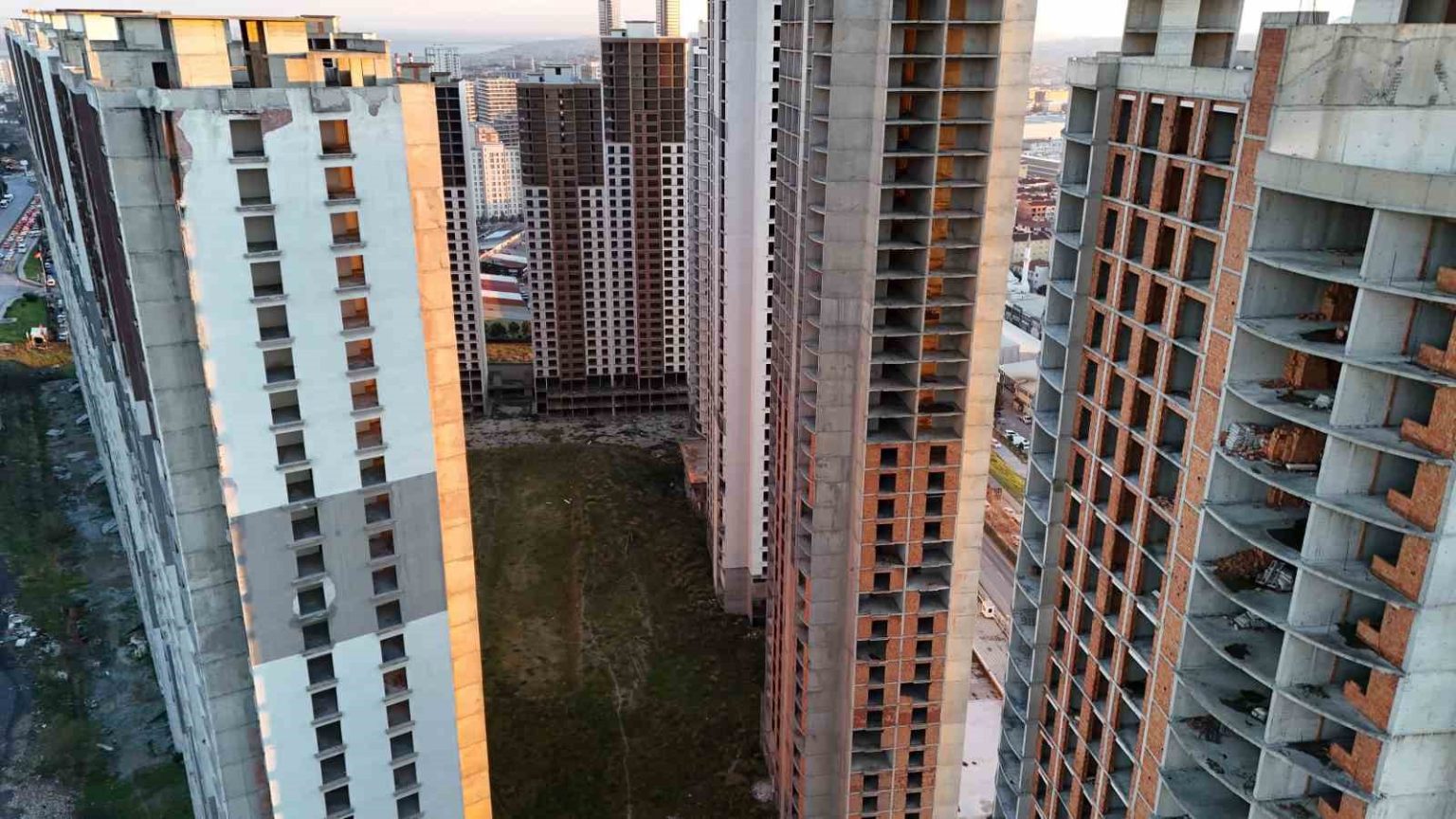 İstanbul Esenyurt’da 2010 yılında yapımına başlanan ancak yıllardır tamamlanamayan yüksek katlı konut projeleri, havadan çekilen görüntülerle bir kez daha gündeme geldi. İnşaat firmalarının davaları, maddi sıkıntıları ve iflasları nedeniyle yarım kalan projeler, ilçeyi adeta “gökdelen mezarlığına” çevirdi.