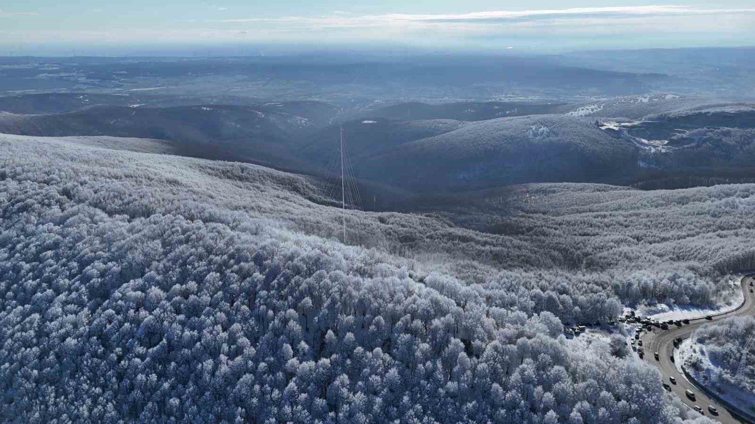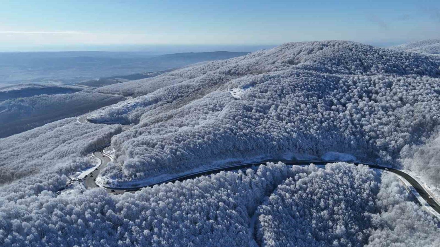 Kırklareli’nde Istranca Dağları’nın yüksek kesimleri, kar yağışı sonrası beyaz örtüyle kaplandı. Ağaçlar üzerinde oluşan kırağı, bölgenin doğal yapısını ortaya çıkardı.