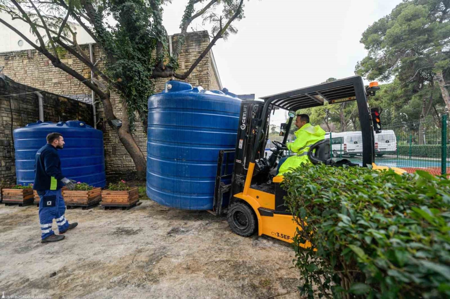 İzmir Büyükşehir Belediyesi, iklim krizi ve kuraklık tehdidine karşı belediye hizmet binalarında yağmur suyu hasadı uygulamalarını yaygınlaştırarak su kaynaklarını korumayı ve şebeke suyuna olan bağımlılığı azaltmayı hedefliyor.