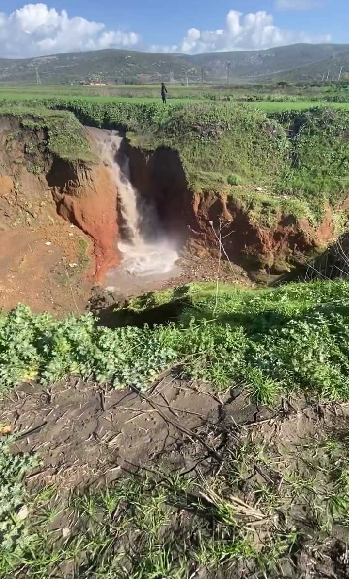 İzmir’in Menderes ilçesinde 2019 yılında meydana gelen obruk oluşumlarıyla gündeme gelen bölge, etkili olan sağanak yağışların ardından yeniden suyla doldu.