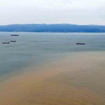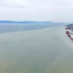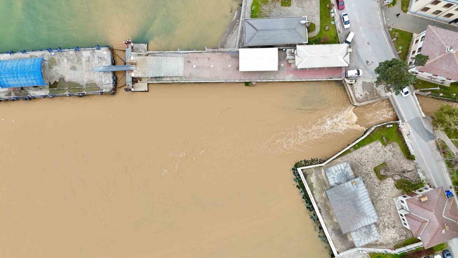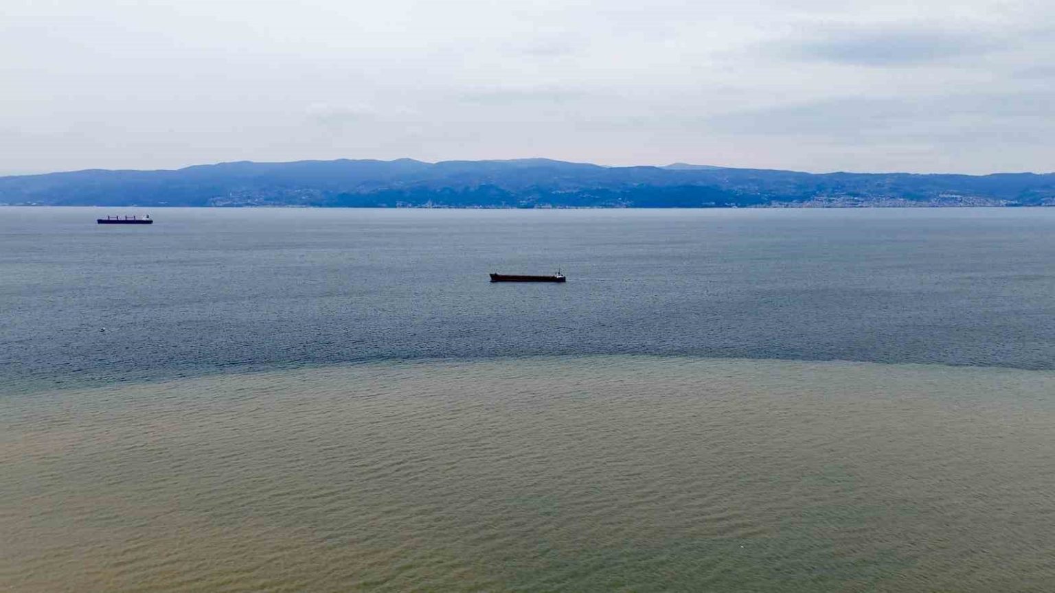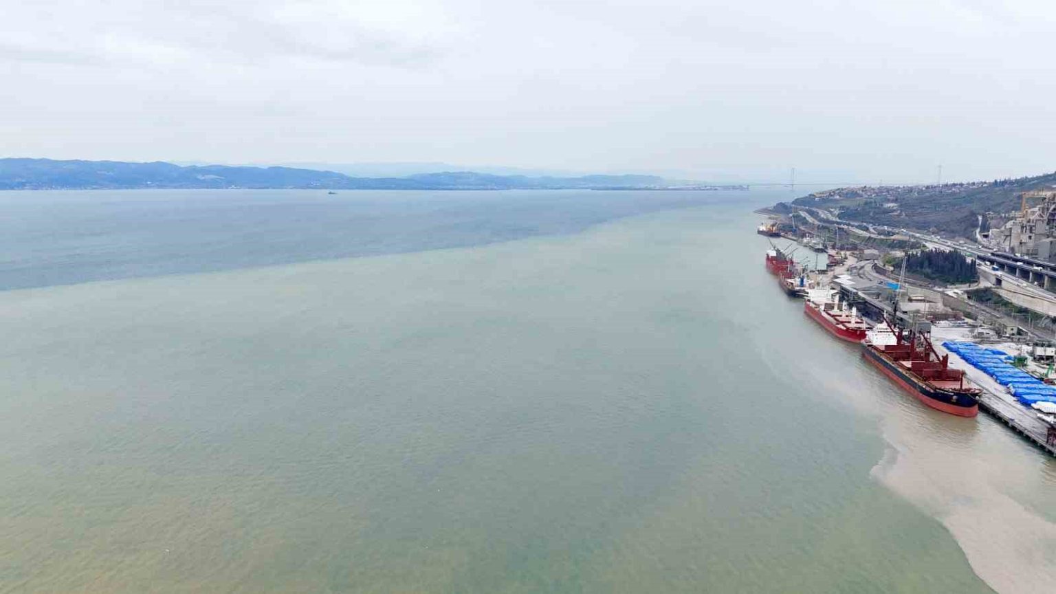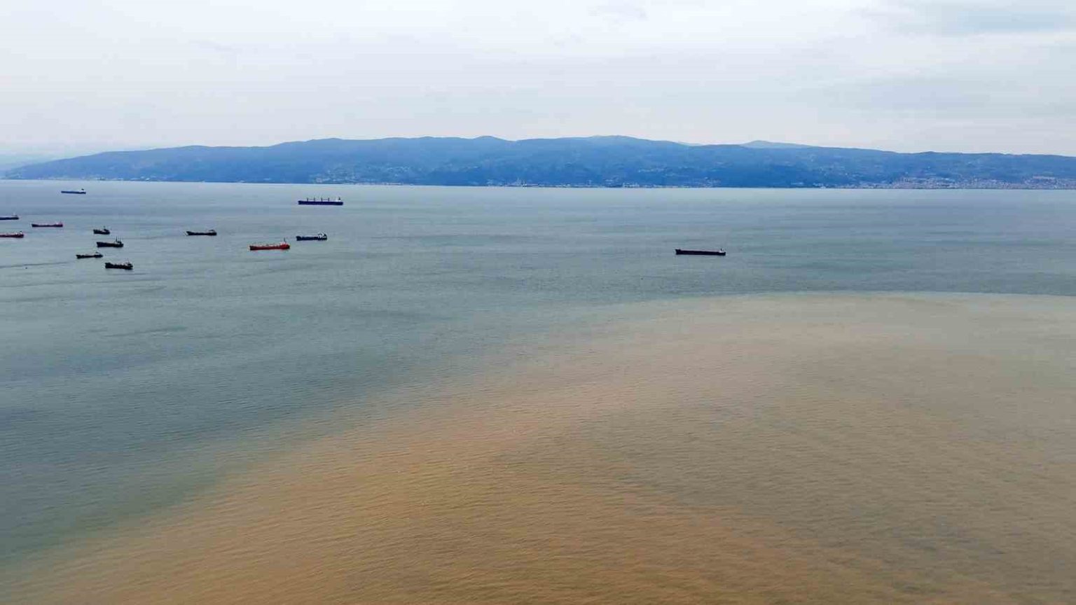 Kocaeli’nin Körfez ilçesinde etkili olan sağanağın ardından derelerden İzmit Körfezi’ne akan çamurlu sular, denizin bir bölümünün rengini kahverengiye dönüştürdü. O anlar havadan da görüntülendi.