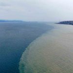 Edinilen bilgiye göre, son günlerde ilçenin yüksek kesimlerinde etkisini gösteren yağış, bölgedeki derelerin debisini artırdı. Hereke’yi geçerek İzmit Körfezi’ne dökülen dere, taşıdığı çamur sebebiyle adeta kahverengi aktı. Derenin getirdiği çamurlu suların denizle buluştuğu noktada İzmit Körfezi’nin bir bölümü iki farklı renge büründü. Mavinin ve kahverenginin keskin bir çizgiyle birbirinden ayrıldığı ilginç anlar, havadan da görüntülendi. Sahil şeridindeki vatandaşlar da oluşan bu doğal manzarayı cep telefonu kameralarıyla kaydetti.