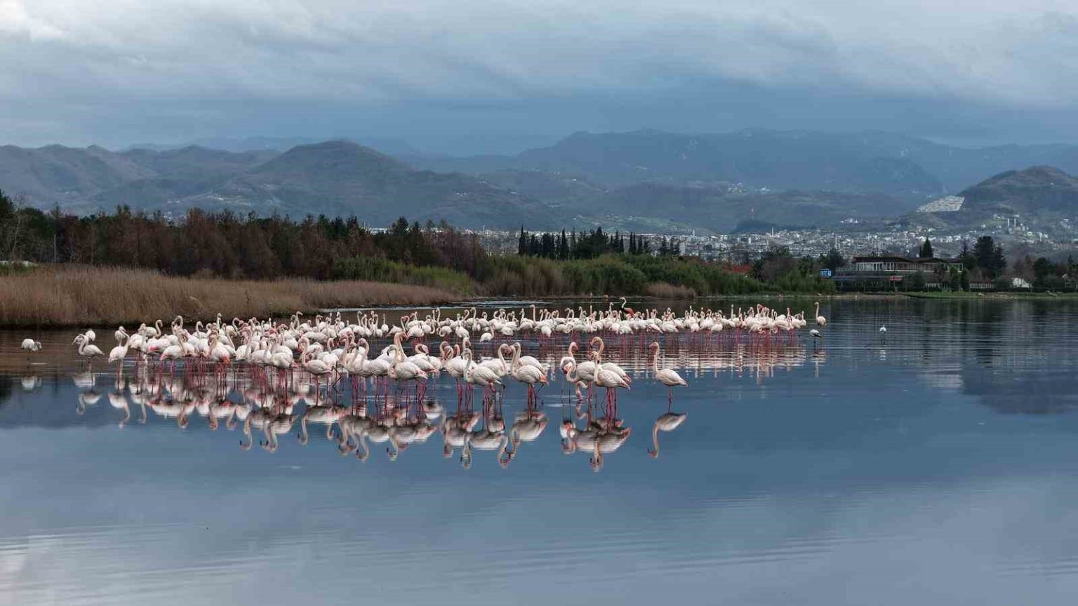Özellikle gün doğumu ve batımında su yüzeyinde oluşturdukları manzarayla dikkati çeken flamingolar, doğa fotoğrafçıları ve kuş gözlemcilerinden ilgi görüyor. Kocaeli’nin kent manzarasıyla bütünleşen kuşlar, dron ile de görüntülendi.