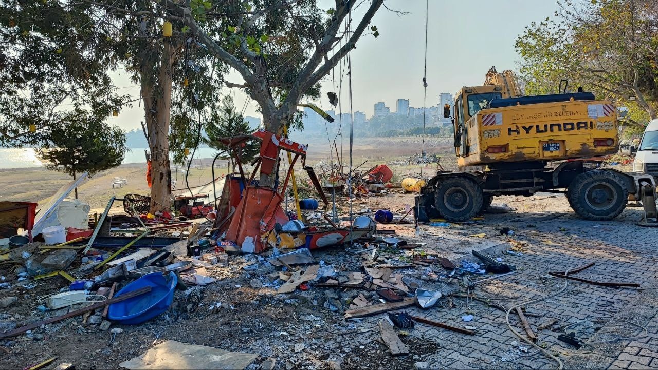 Adana’da Amerikan Adası olarak bilinen yerdeki kaçak yapıların yıkım işlemleri ikinci gününde de devam ederken, bir taraftan da molozlar temizlenmeye başlandı.