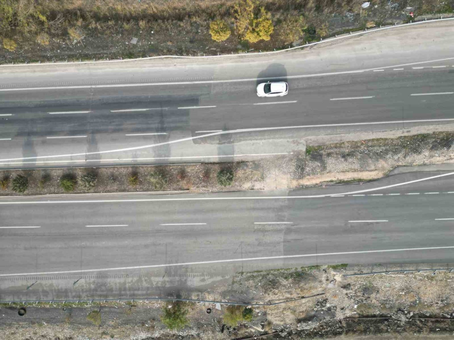 Merkez Dulkadiroğlu ilçesi Çiğli mevkiinden geçen Kahramanmaraş – Gaziantep karayolunda 6 Şubat 2023’te meydana gelen depremin izleri hala gözle görülüyor. Karayolu altından geçen fay, 6 Şubat depremleri sonrası yaklaşık 7 metre kaydı. Güzergahtaki bir araç sol şeritten seyrederken fay hattının geçtiği noktada bir anda orta şeritte kalıp yoluna devam etmek zorunda kalıyor. Depremin izlerini taşıyan yolun son durumu dron ile de görüntülendi.