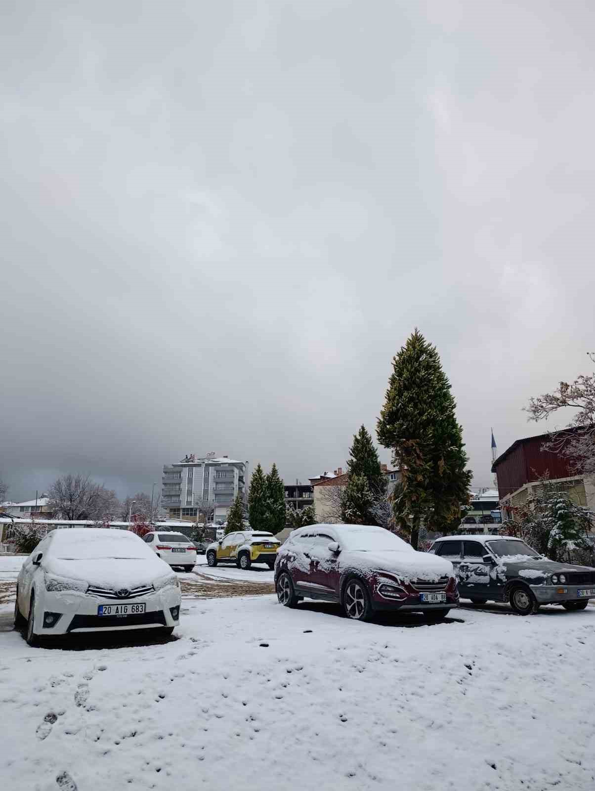 Denizli’nin Kale ilçesinde gece saatlerinde etkisini gösteren kar yağışı, ilçeyi kısa sürede beyaz örtüyle kapladı.