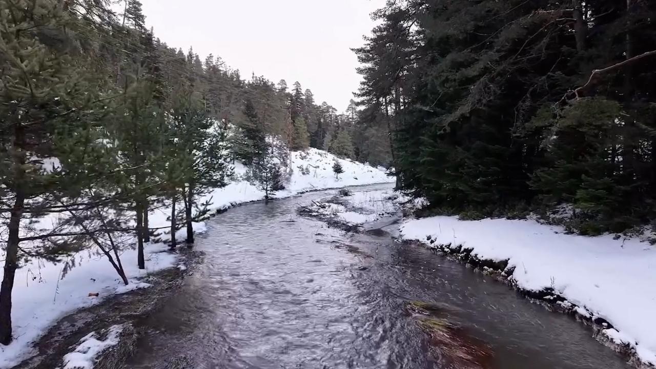 Bolu’da etkili olan kar yağışı, Aladağ bölgesindeki çam ormanlarında kartpostallık görüntüler oluşturdu.