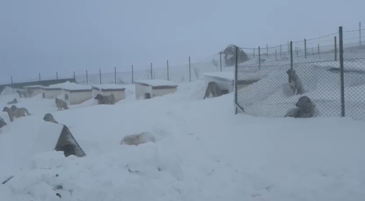 Yoğun kar yağışı ve tipinin etkili olduğu Sivas’ın Altınyayla ilçesinde bir Kangal yetiştiricisi, hayvanlarını kontrol etmek için gittiği çiftlik yolunda kara saplandı. Güçlükle çiftliğe ulaşan vatandaş, gördüğü manzara karşısında ise gözlerine inanamadı.