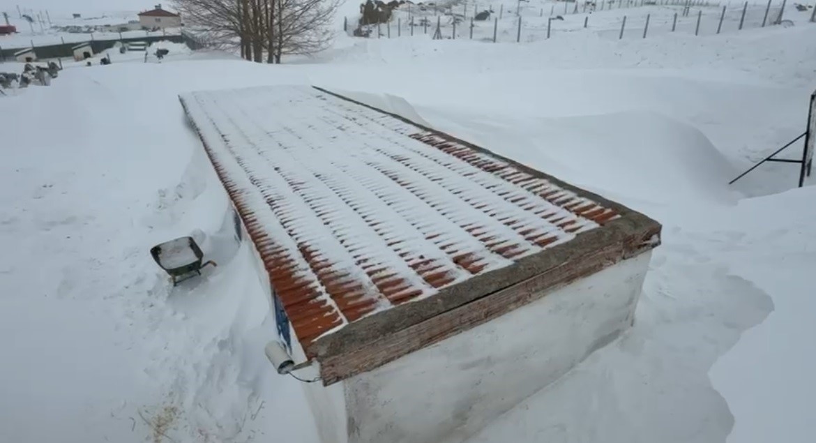 Sivas’ın Altınyayla ilçesinde etkili olan yoğun kar yağışı ve tipi hayatı olumsuz etkilemeye devam ediyor. İlçede yaşayan Kangal yetiştiricisi Umut Taşdelen, olumsuz hava şartlarına rağmen hayvanlarını kontrol etmek ve beslemek için Kangal çiftliğine gitmek üzere yola çıktı. Ancak karla kaplanan yolda ilerlemekte güçlük çeken Taşdelen’in aracı bir süre sonra kara saplanarak mahsur kaldı. Zorlu şartlara rağmen yoluna devam eden ve çiftliğine ulaşmayı başaran Taşdelen, çiftliğe vardığında 2 metreyi bulan kar kalınlığı karşısında gözlerine inanamadı. Yoğun kar yağışı nedeniyle bazı yollar tamamen kaybolurken, kar kalınlığının yer yer ev boyuna ulaştığı görüldü. Bazı ağaçların ise kar altında tamamen kaybolması dikkat çekti. Umut Taşdelen daha önce böyle bir kış geçirmediğini söyledi.