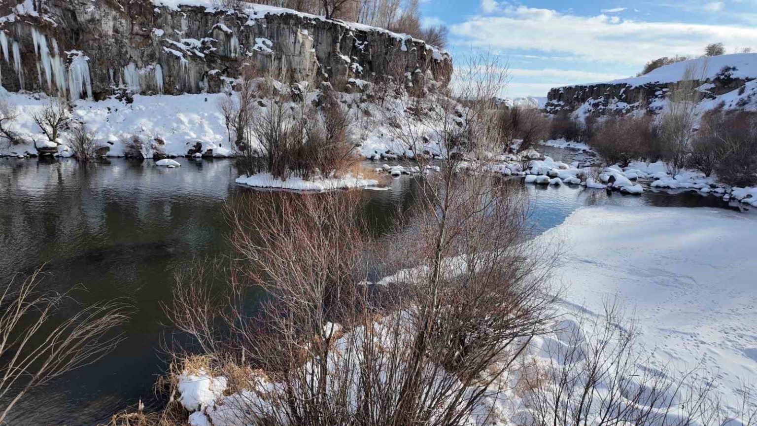 İlçede geçtiğimiz hafta etkili olan kar yağışının ardından hava sıcaklıkları mevsim normallerine döndü. Gündüz 3 ila 5 derece arasında seyreden sıcaklık gece eksi 10’a kadar düşüyor. Koçköprü Kanyonu’nda bulunan kar kütleleri gündüz erirken gece de donuyor. Böylece metrelerce boyda buz sarkıtları oluşuyor. Doğa severlere ve fotoğraf tutkunlarına görsel şölen sunan sarkıtlar ilgi odağı oluyor. İlçe merkezine yaklaşık 15 kilometre uzaklıkta bulunan sarkıtları görmek isteyen vatandaşlar Koçköprü Kanyonu’na geliyor.