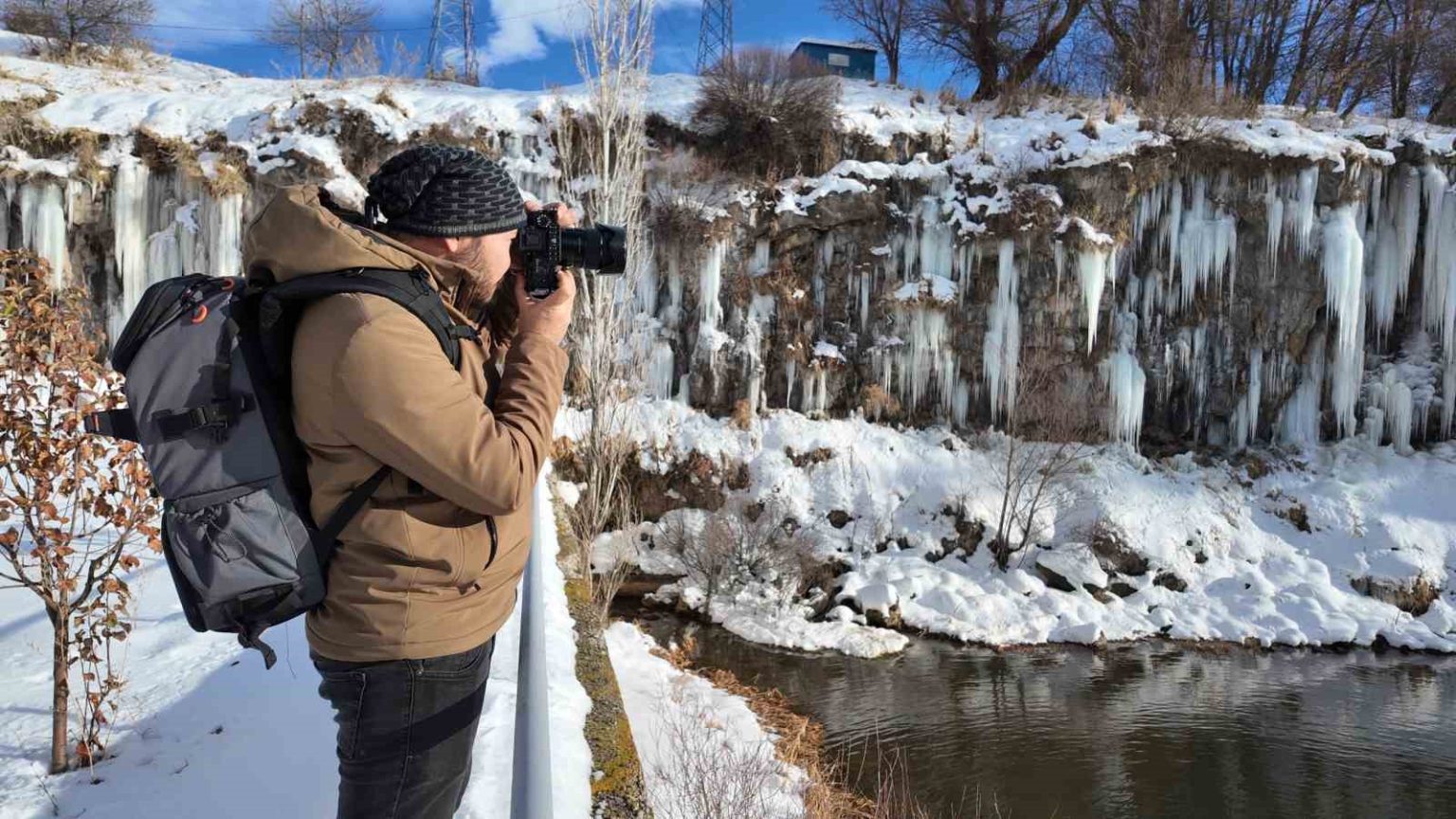 Fotoğraf sanatçısı Ferzanda Coşar, “35 yıldır Van Gölü çevresinde her taraftan yaz, kış, soğuk, sıcak demeden fotoğraf çekiyoruz. Bugün de buraya geldik. Kaç gündür yol kapalıydı, gelemiyorduk. Yollar açılınca buraya geldik. Tabiat güzelliklerini topluma arz etmek için, sosyal medyada paylaşmak için çekimler yapıyoruz. Burada eriyen kardan dolayı sarkıtlar oluşmuş. Sarkıtların yüksekliği 30-35 metre. Gündüz hava sıcaklığı eksilere düşüyor. Hava ayaz olunca, soğuk olunca eksi 15-25’e kadar hava sıcaklığı oluyor. Haliyle güzel bir yağış olmuş. Bereketli olsun. Ülkemizin her tarafından bu yağışın yağmasını arzu ediyoruz. Burada biz gelip fotoğraf çekiyoruz. Sosyal medyada paylaşınca, ülkemizin her tarafından fotoğrafçılar, vatandaşlar gelip buradan bu güzellikleri ölümsüzleştiriyor. Haliyle fotoğraf çekip kendi sitelerinde paylaşıyorlar. O da bizim ilimiz için çok güzel bir görsel oluyor.” diye konuştu.