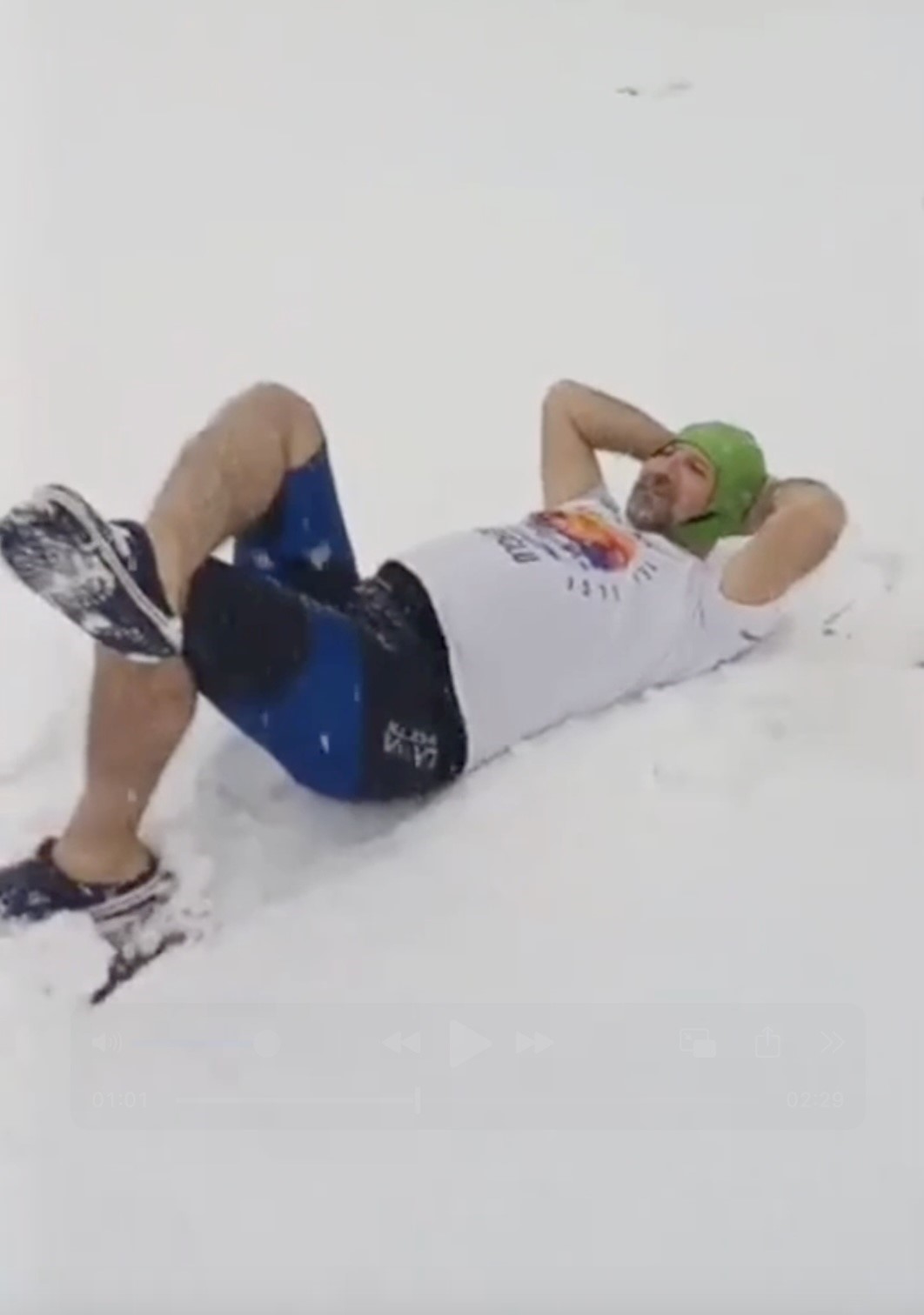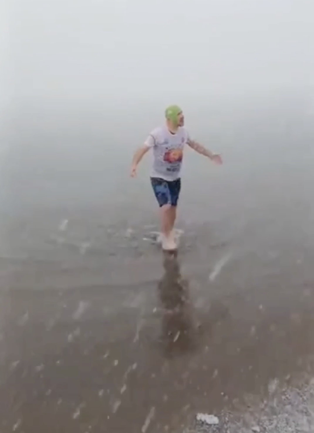 Kastamonu’nun İnebolu ilçesinde hava sıcaklığının 3, deniz suyu sıcaklığının 9 derece olmasına aldırış etmeyen 54 yaşındaki Saim Gürel, yeni yılın ilk gününde denize girerek yüzdü. Arkadaşları kalın kıyafetlerle kendisini takip ederken, dondurucu soğuğa aldırış etmeyen Gürel, önce karların üzerine yattı, ardından denize girerek yüzdü. Gürel’in arkadaşları o anları cep telefonuyla görüntüledi.