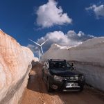 Bölgedeki etkileyici manzarayı kayıt altına alan Karakoç, “Tokat’ın Reşadiye ilçesi Bozcalı kasabasında rüzgâr elektrik santrallerinin olduğu bölgedeyiz. Şu anda enerji santraline giden yol güzergâhındayız. Gördüğünüz gibi 5-6 metre kar var. Gerçekten görülmesi gereken bir yer” dedi.