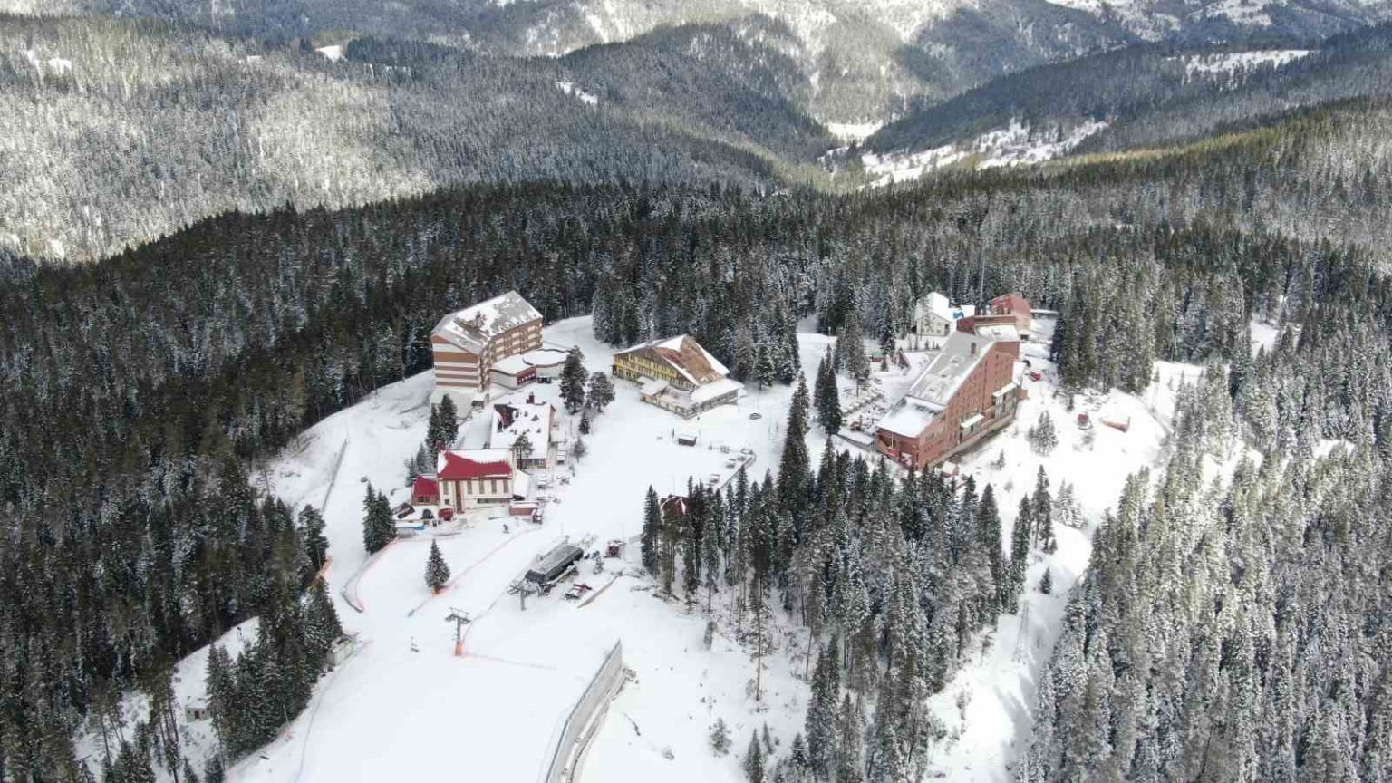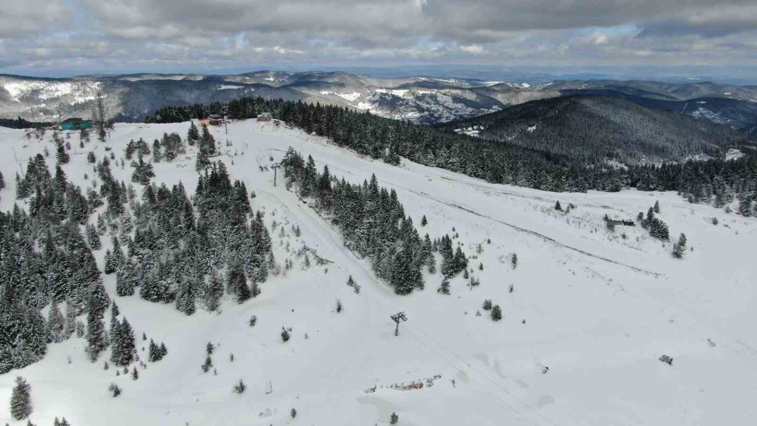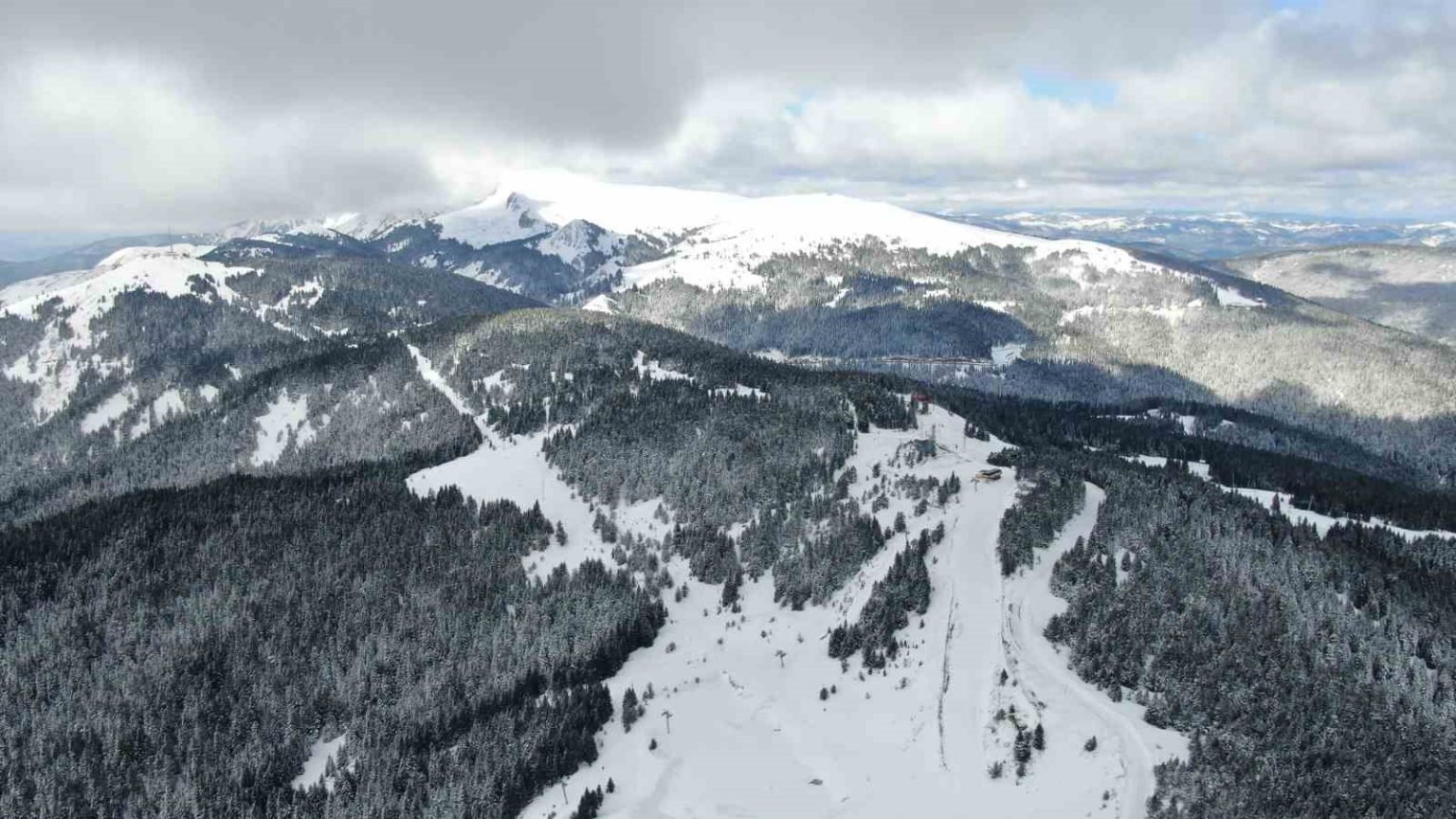Meteoroloji Müdürlüğü’nün soğuk hava tahmininde bulunduğu Kastamonu’da dün yüksek kesimlerde kar yağışı etkili oldu. Kastamonu ve Çankırı sınırlarında yer alan Ilgaz Dağı Milli Parkı’nda da kar yağışı ara ara etkili olmaya devam ediyor. Kar yağışı sonrasında Ilgaz Dağı beyaz örtüyle kaplandı. Sabah saatlerinde güneşin yüzünü göstermesiyle birlikte Ilgaz Dağı’nın zirvesi ve ormanlık alanlarda kışı aratmayan manzaralar ortaya çıktı. Görsel şölen sunan Ilgaz Dağı, havadan görüntülendi.