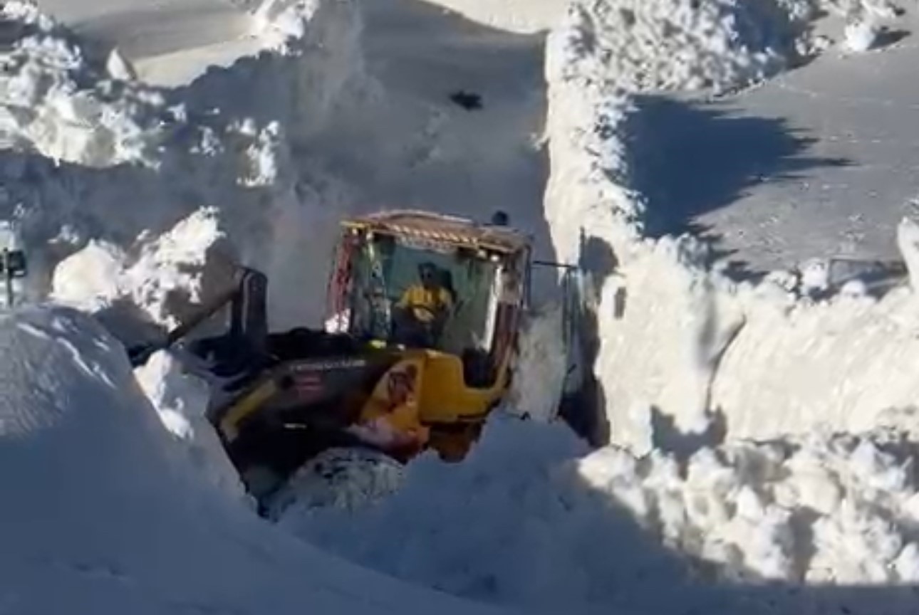 Kar duvarları iş makinelerinin boyunu aştı