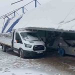 Meteorolojinin şiddetli yağış uyarısında bulunduğu Hatay’da gece saatlerinden itibaren kar yağışı etkili oldu. Şiddetli yağışla birlikte çevre beyaza bürünürken Altınözü ilçesi Mayadalı Mahallesi’nde bulunan zeytinyağı fabrikasının çatısı kar kütlesini taşıyamayarak çöktü. Güvenlik kamerasına yansıyan görüntülerde çatı, park halindeki; traktör, kamyonet ve hafif ticari aracın üzerine devrildi. Olayda yaralanma yaşanmazken, hafif ticari aracın camı zarar gördü.