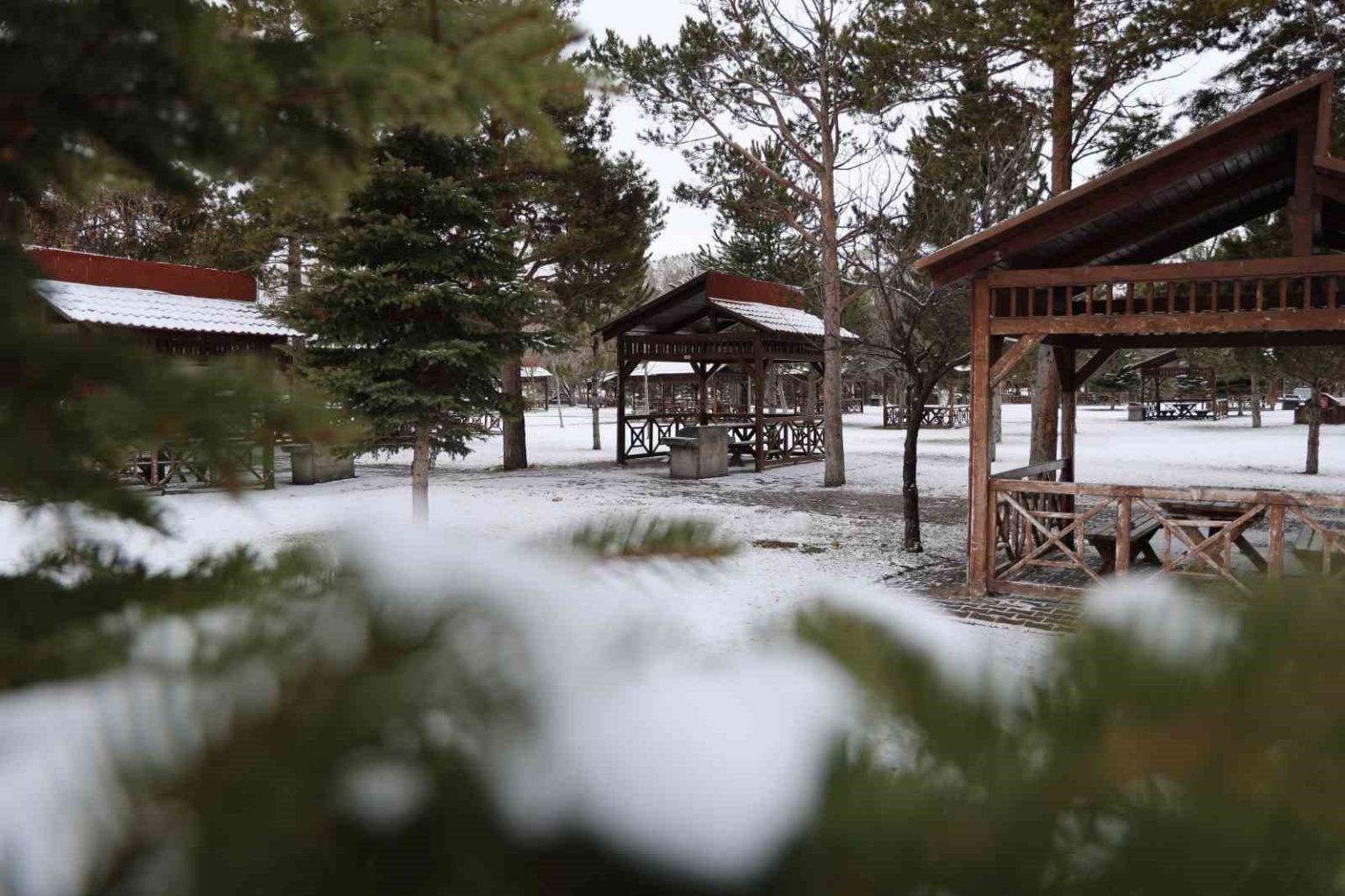 Kentin simge mekanlarından Paşabahçe Mesire Alanı da yeniden beyaz gelinliğini giydi. Şehir merkezine 10 kilometre mesafedeki mesire alanındaki masalsı kış güzelliği havadan görüntülendi.