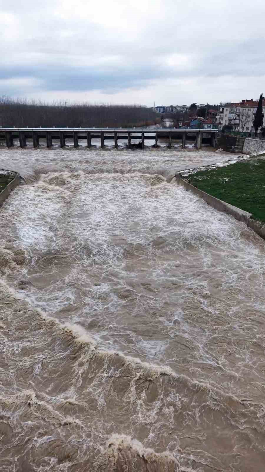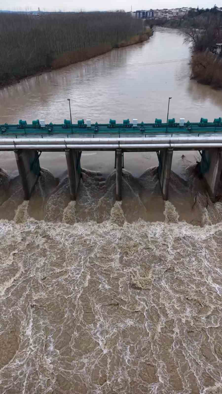 Kar ve yağmurların ardından, Mustafakemalpaşa Çayı coştu