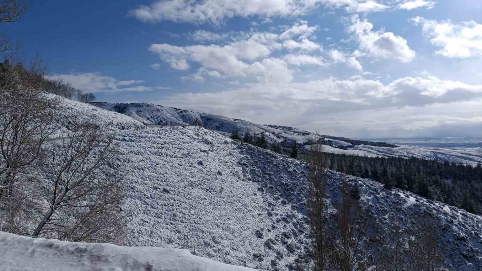 Son günlerde etkili olan soğuk hava ve fırtınanın ardından yüksek bölgelerde kar yağışı görüldü. Bektaşpınar mevkii ve çevresindeki yollarda kar kalınlığının artmasıyla birlikte doğa beyaza büründü. Mavi gökyüzü ve beyaz örtünün birleştiği bölgede oluşan kar manzaraları, izleyenleri büyüledi. Kar yağışıyla birlikte ormanlık alanlar ve tepeler tamamen karla kaplanırken, ortaya çıkan görsel şölen Eskişehir’in kış güzelliğini bir kez daha gözler önüne serdi. Vatandaşlar bu anları ölümsüzleştirmek için kartpostallık kareler kaydetti.