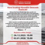 Düzce Valiliği, Meteoroloji Genel Müdürlüğü’nden yapılan son değerlendirmeleri paylaştı. Valilik’ten yapılan açıklamada, “Meteoroloji Genel Müdürlüğü’nden yapılan son değerlendirmelere göre 26 Aralık 2025 Cuma gününden itibaren ülkemizin batı kesimlerinden başlayarak soğuk ve yağışlı havanın etkisine girmesi beklenmektedir. Yağışların bölgemiz genelinde karla karışık yağmur ve kar şeklinde olacağı tahmin edilmektedir. Halen mevsim normalleri civarında seyreden hava sıcaklıklarının bölgemiz genelde hissedilir derecede 4 ile 10 derece azalacağı tahmin edilmektedir. Soğuk havanın bölgemiz genelinde önümüzdeki hafta boyunca da etkisini sürdürmesi beklenmektedir” denildi.