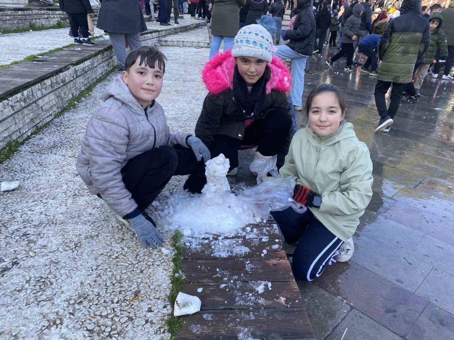 Kar yağmayan ilçede çocuklara kar sürprizi