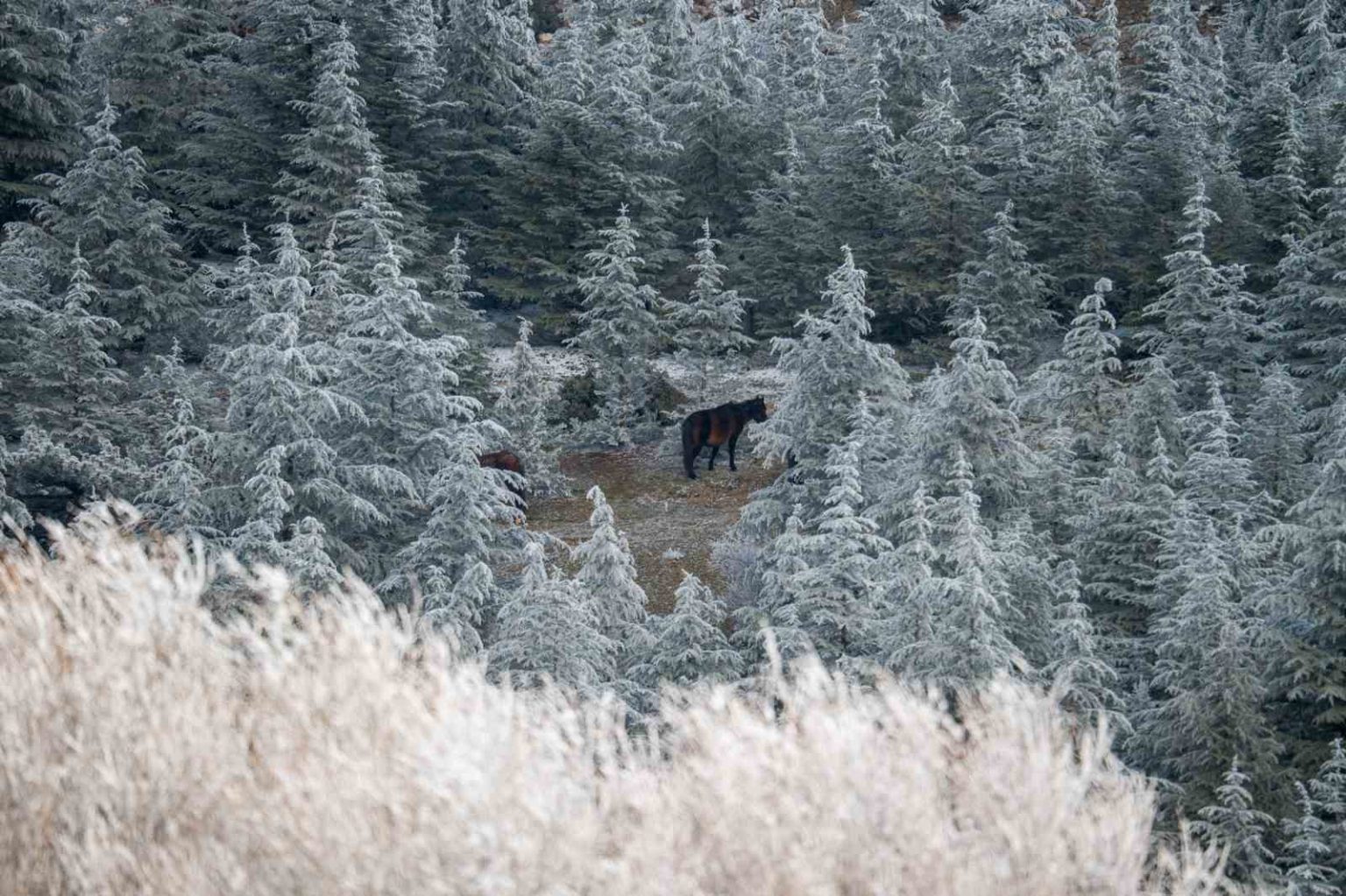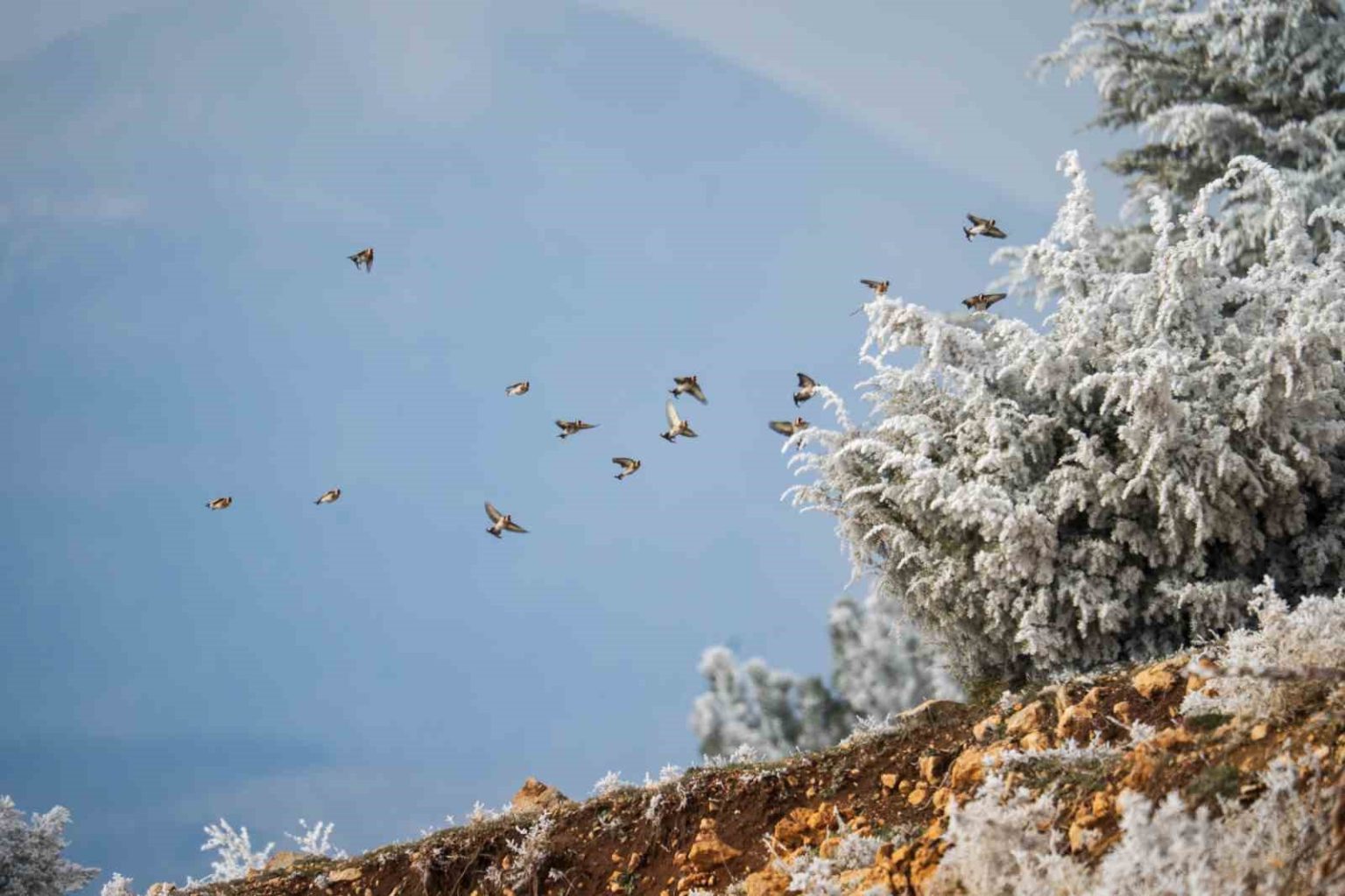 Soğuk hava şartları, Spil Dağı’nda yaşayan yaban hayvanlarını da olumsuz etkiledi. Kar olmamasına rağmen zeminin buzla kaplanması nedeniyle yiyecek bulmakta güçlük çeken saka kuşları beyaz buz örtüsü altında yem aramaya çalıştı.