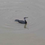 Eskişehir’de Porsuk Çayı’nda avlanmaya çalışan Karabatak cinsi bir kuş dikkat çekti.