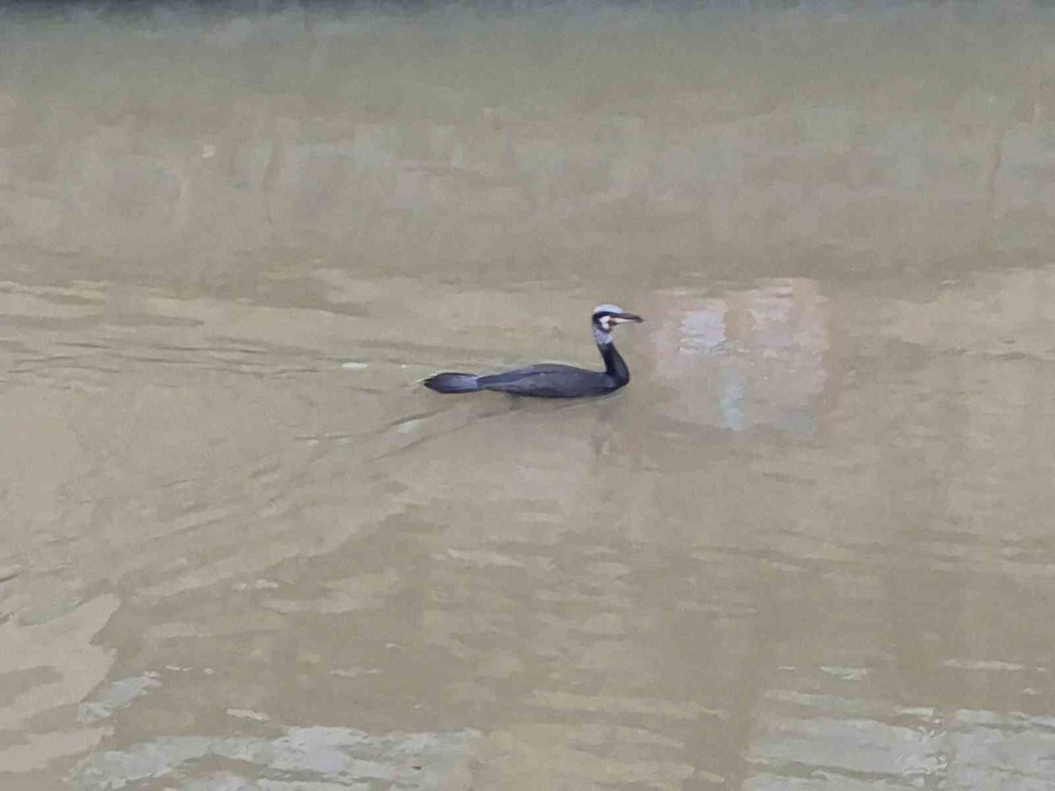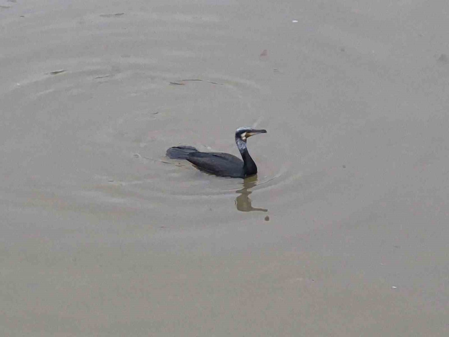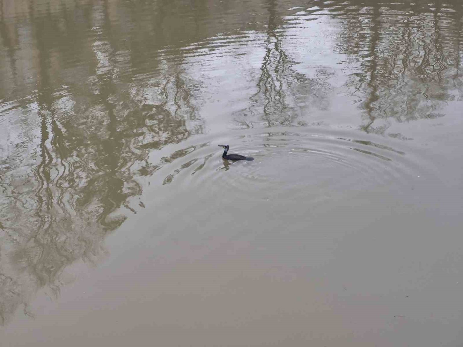 Eskişehir’de Porsuk Çayı’nda avlanmaya çalışan Karabatak cinsi bir kuş dikkat çekti.