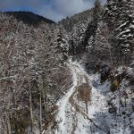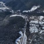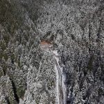 Karabük-Bartın kara yolunda etkili olan kar yağışı sonrası oluşan beyaz örtü dronla görüntülendi.