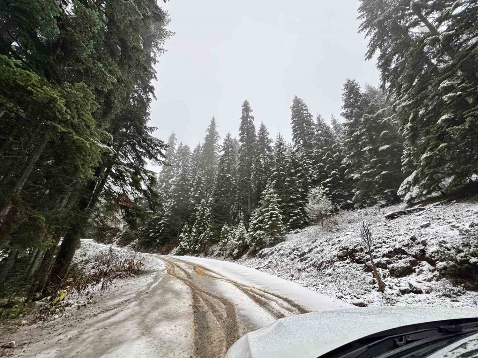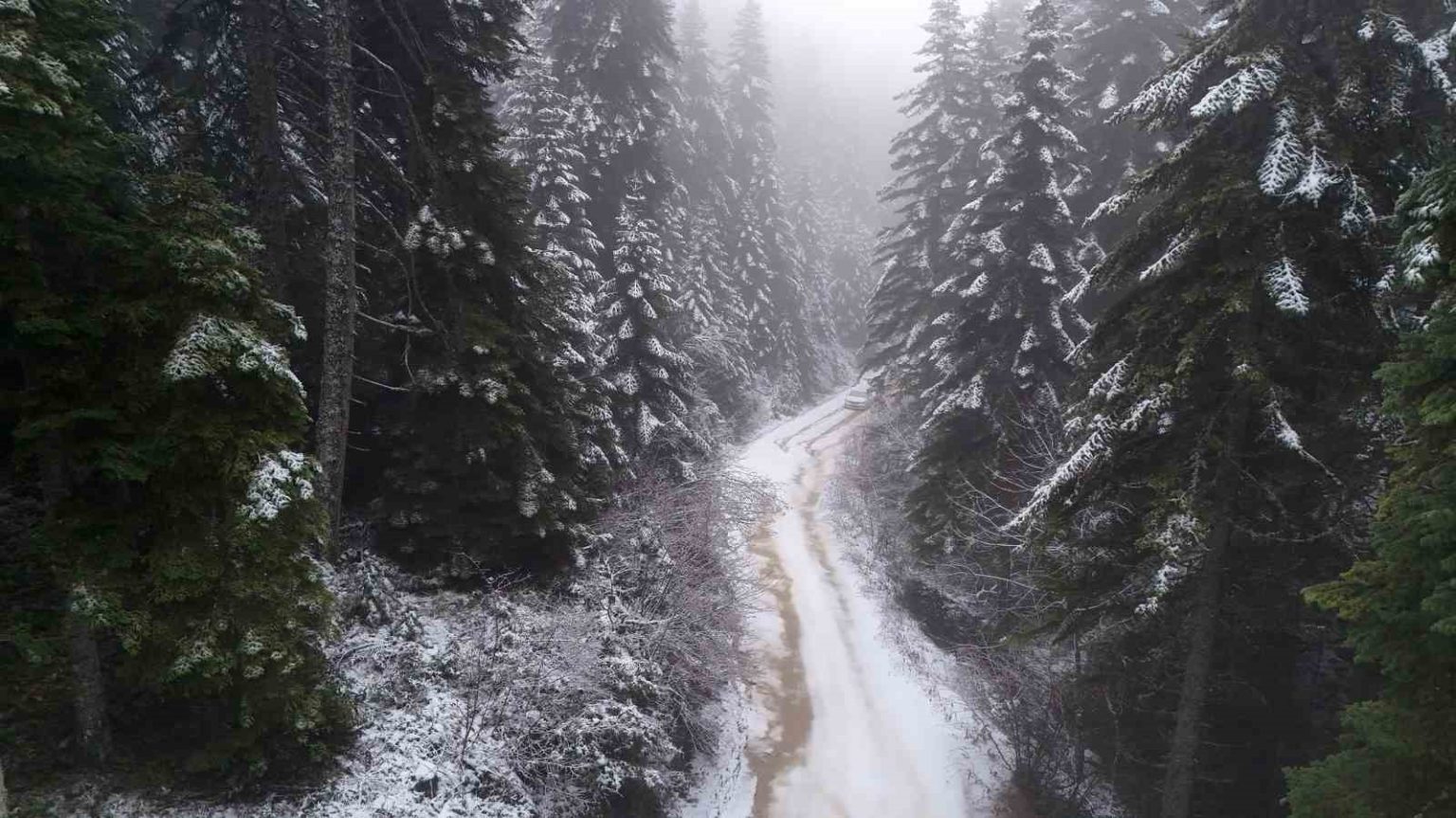 Karabük’ün yüksek kesimlerinde dün akşam saatlerinde etkili olan kar yağışı sonrası beyaz örtüyle kaplanan doğa dronla görüntülendi.