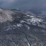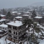 Karabük’te kar yağışıyla beyaz örtüyle kaplanan tarihi konakların çatıları ve ormanlar dronla görüntülendi.